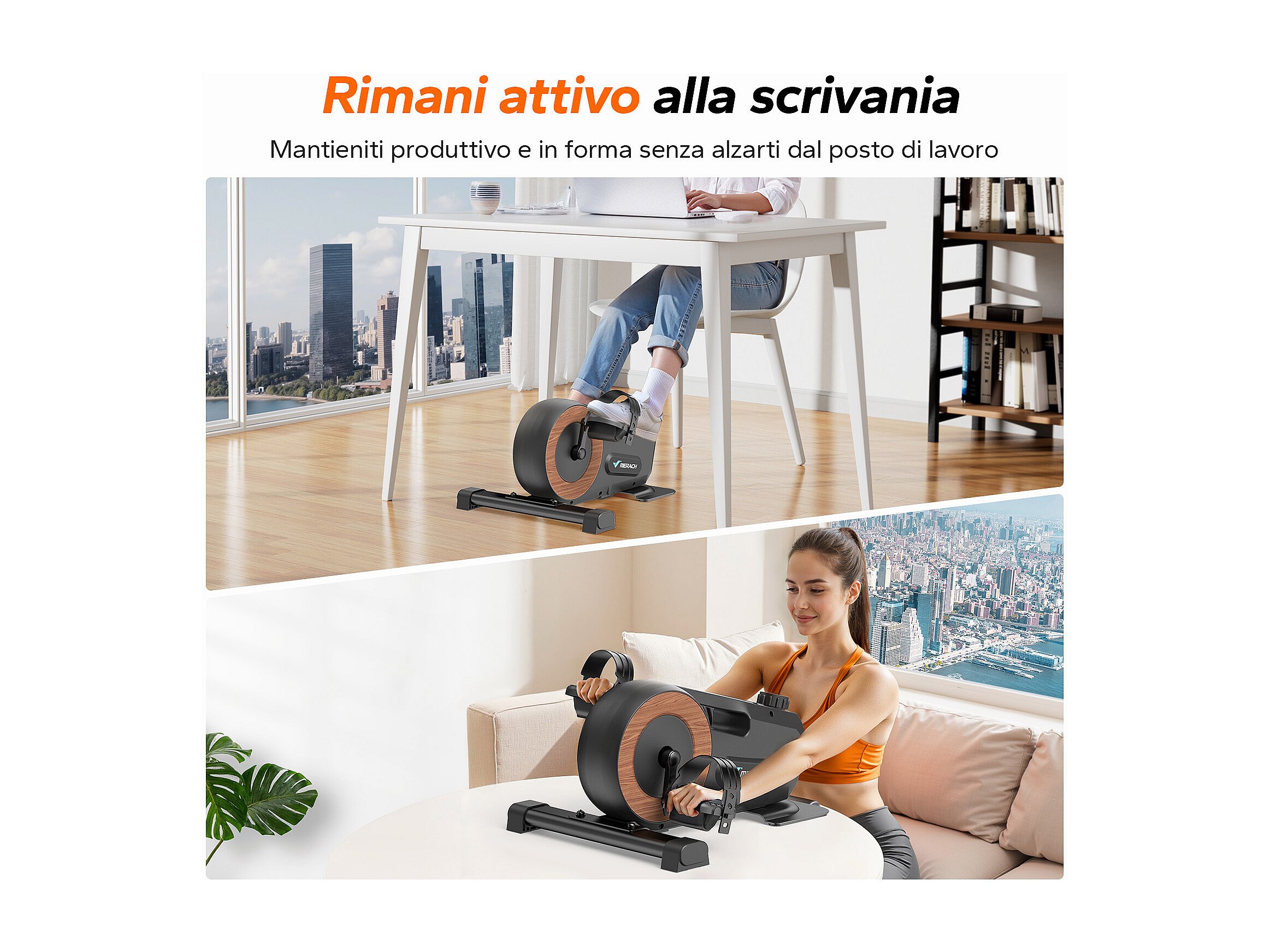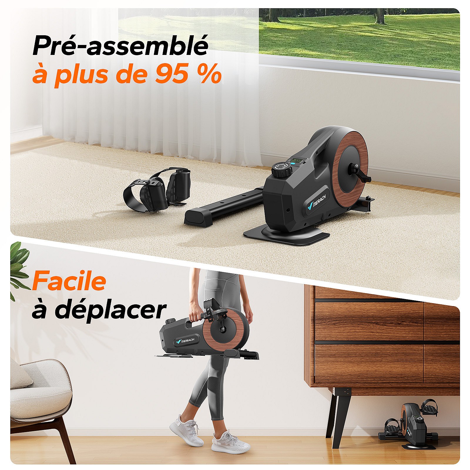 Pédalier D'appartement Merach - Mini Bike - Connectivité Bluetooth - Tapis Antidérapant - Double Usage
