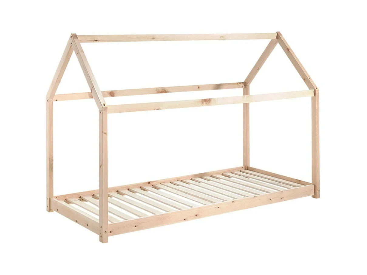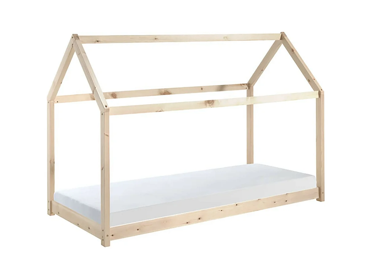 PEGA - Lit Cabane 90x200cm en Pin Naturel + Matelas