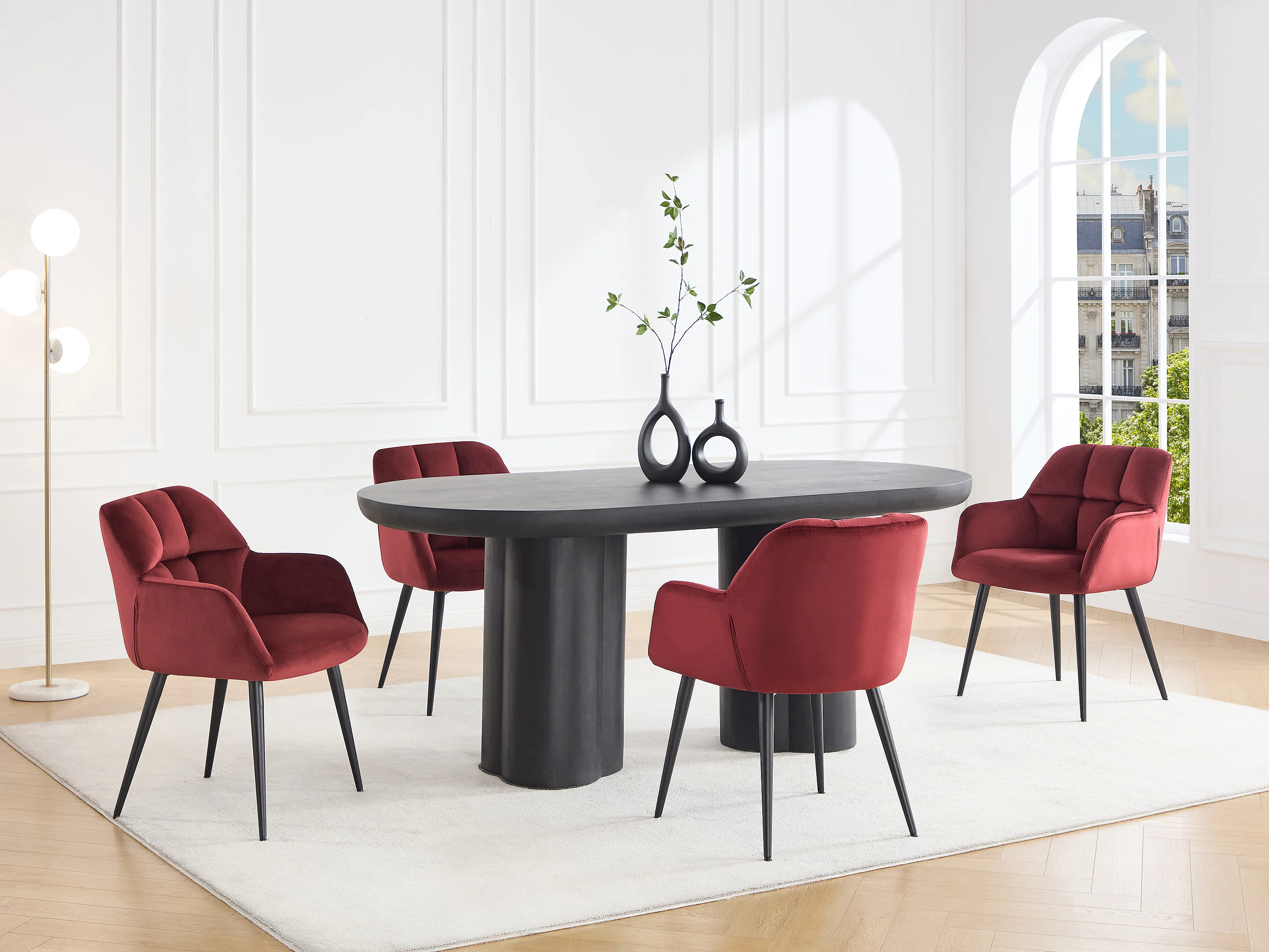 Lot de 6 chaises avec accoudoirs en velours et métal noir - Bordeaux - PEGA de Pascal Morabito