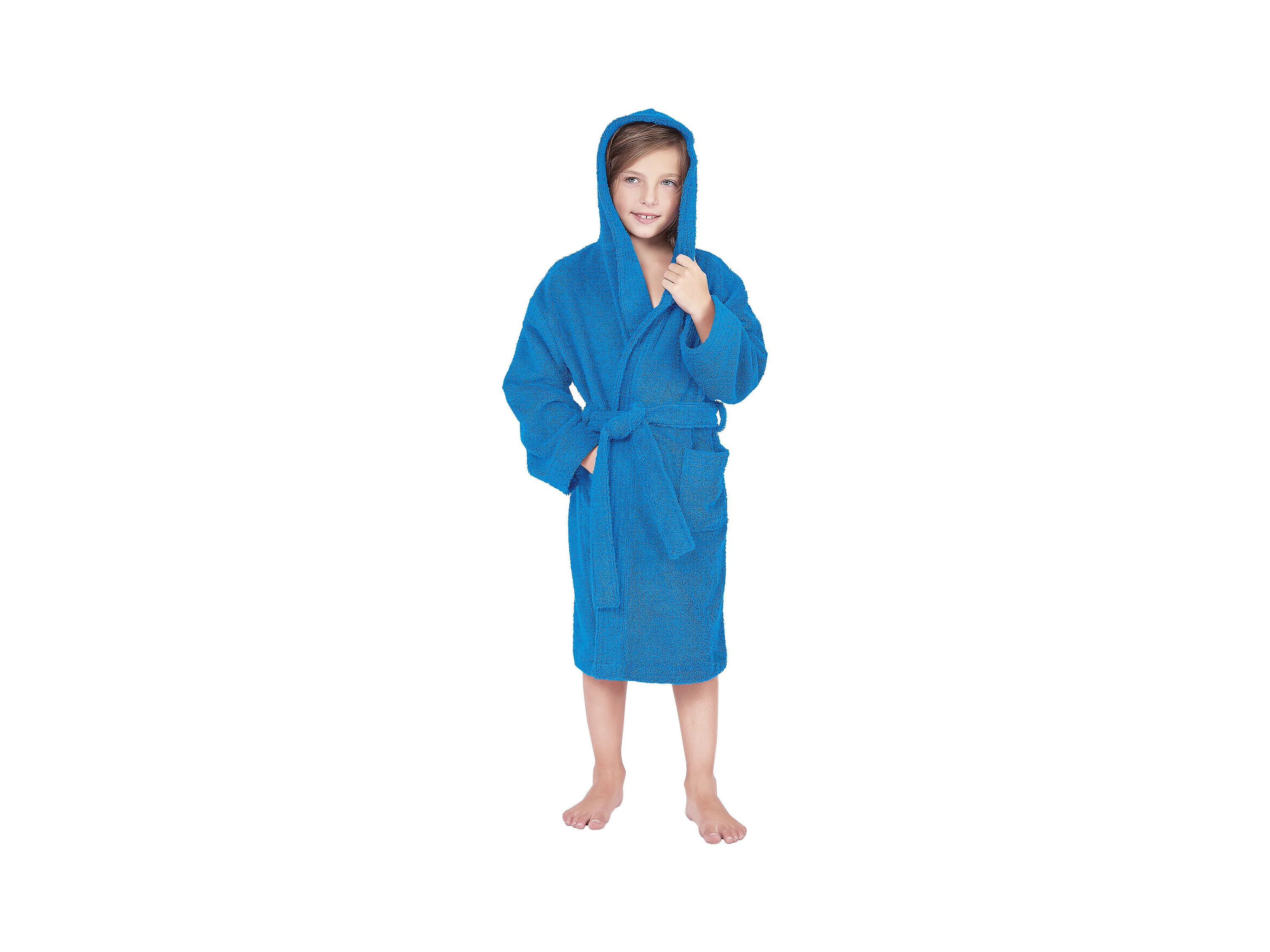 Peignoir à capuche enfant COOL coton 12 ANS velours bleu Turquoise