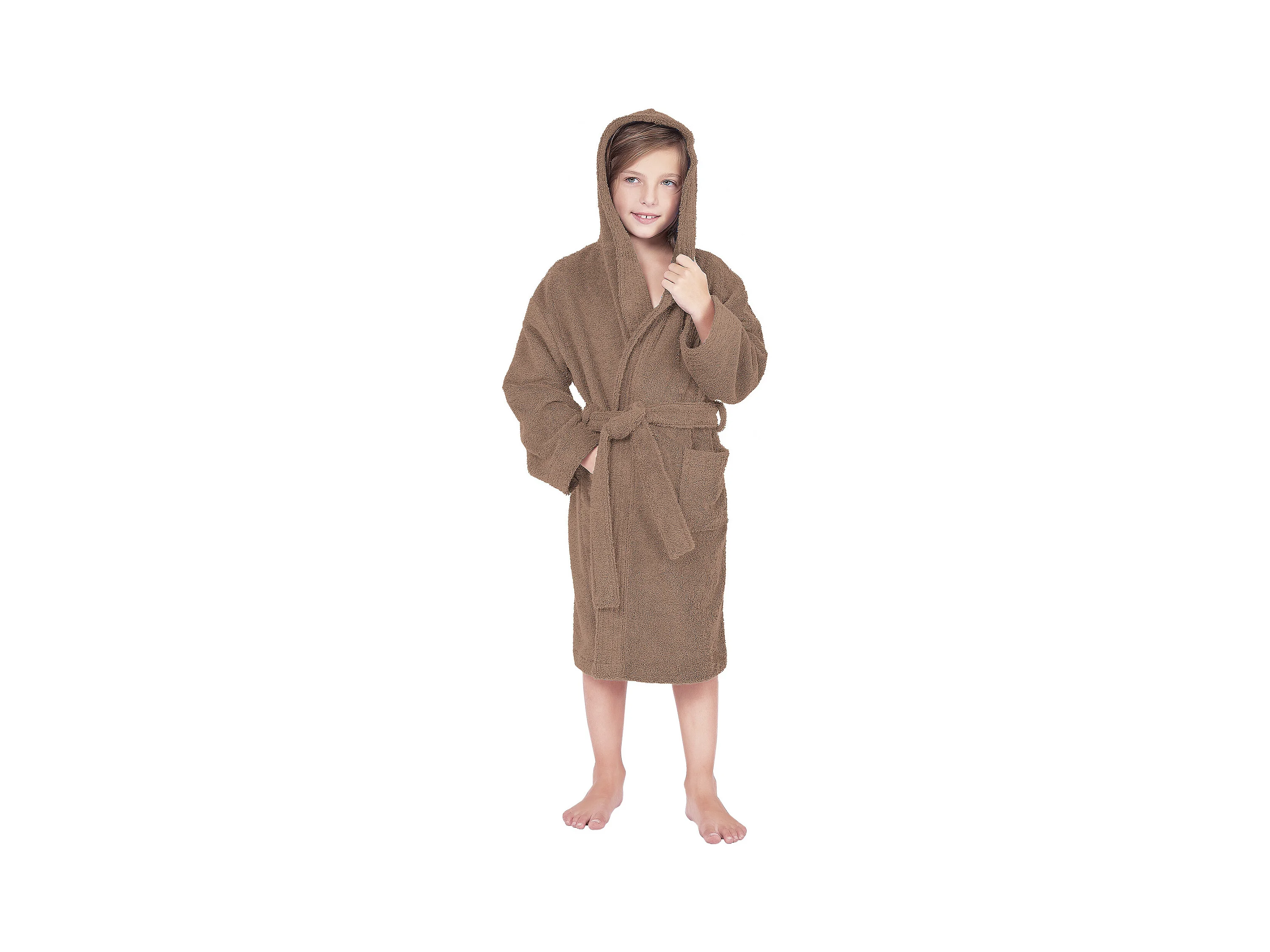 Peignoir à capuche enfant COOL coton 14 ANS velours marron Taupe