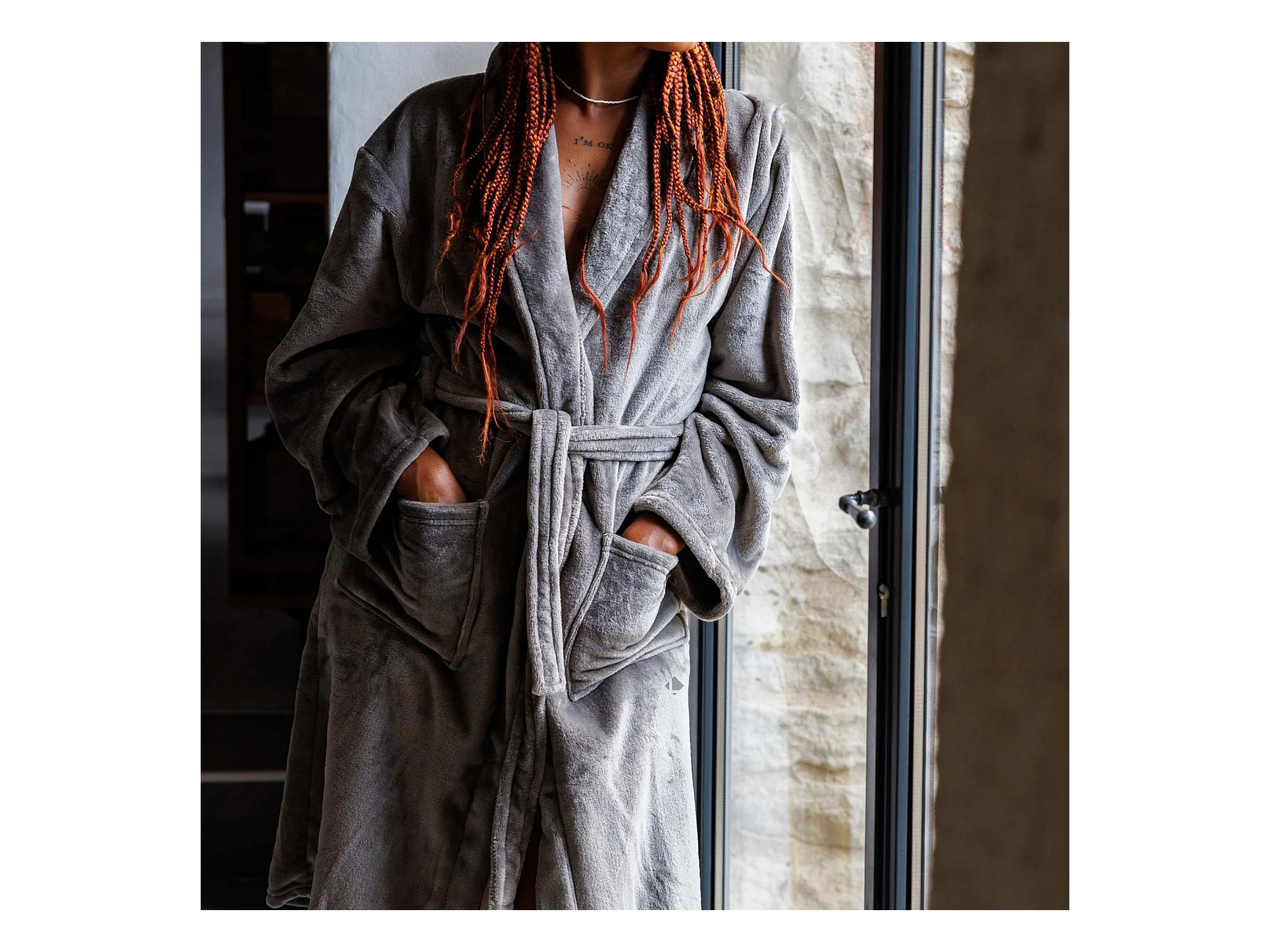 Peignoir col châle adulte DORIS micro fourrure taille S marron chamois