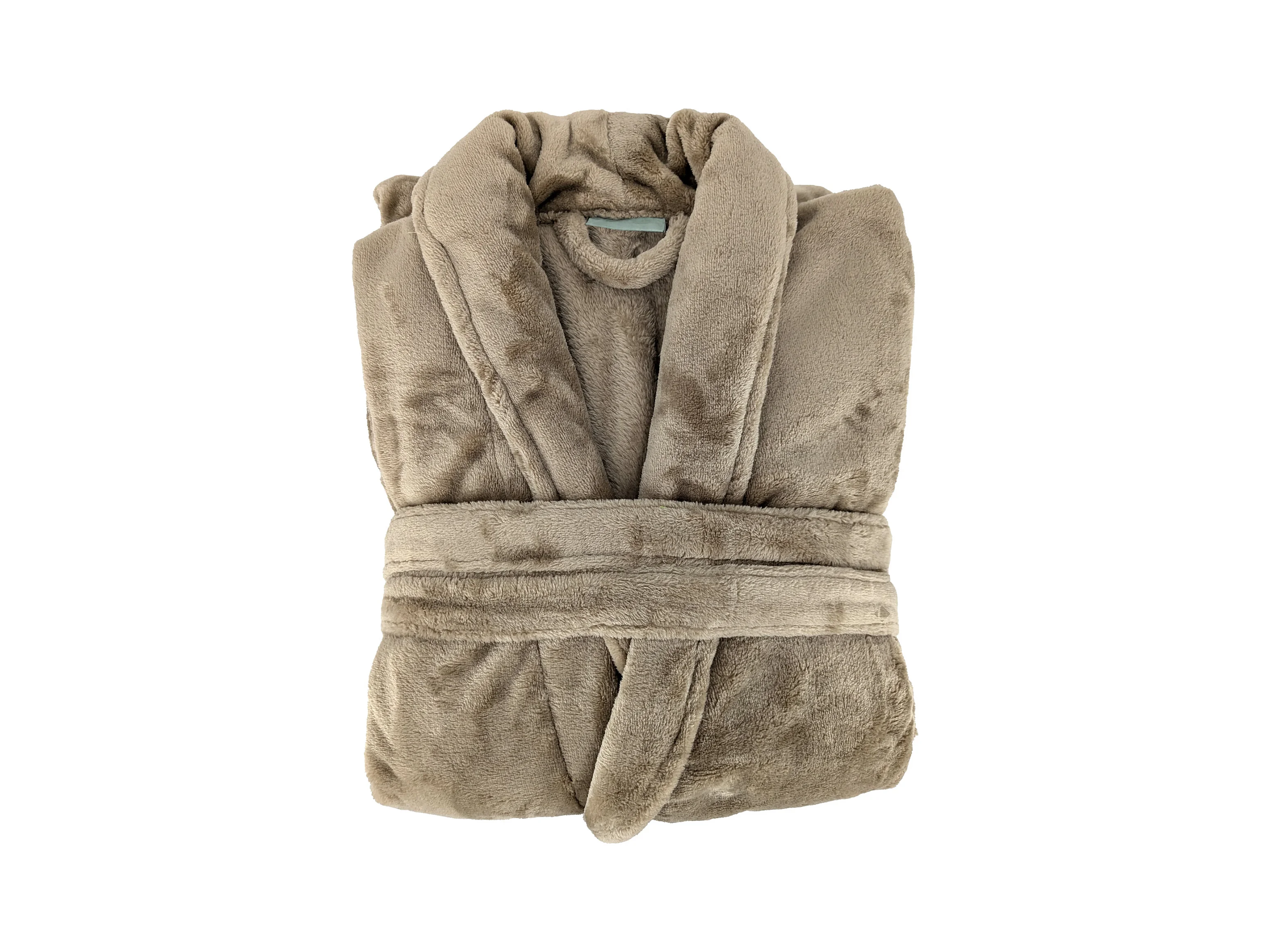 Peignoir col châle adulte DORIS micro fourrure taille S marron mouflon