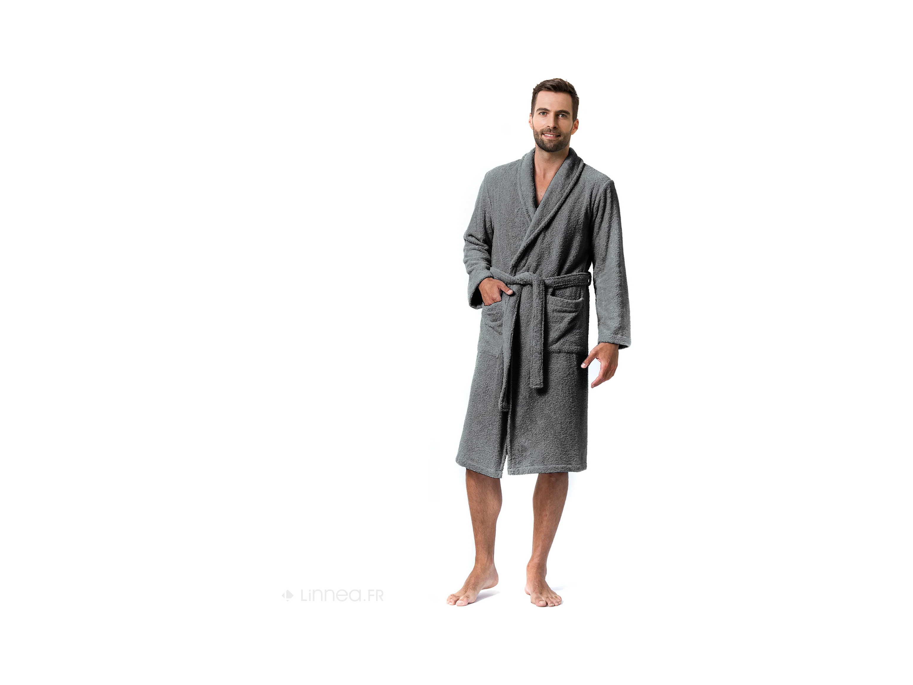 Peignoir col châle adulte PURE coton XL gris anthracite