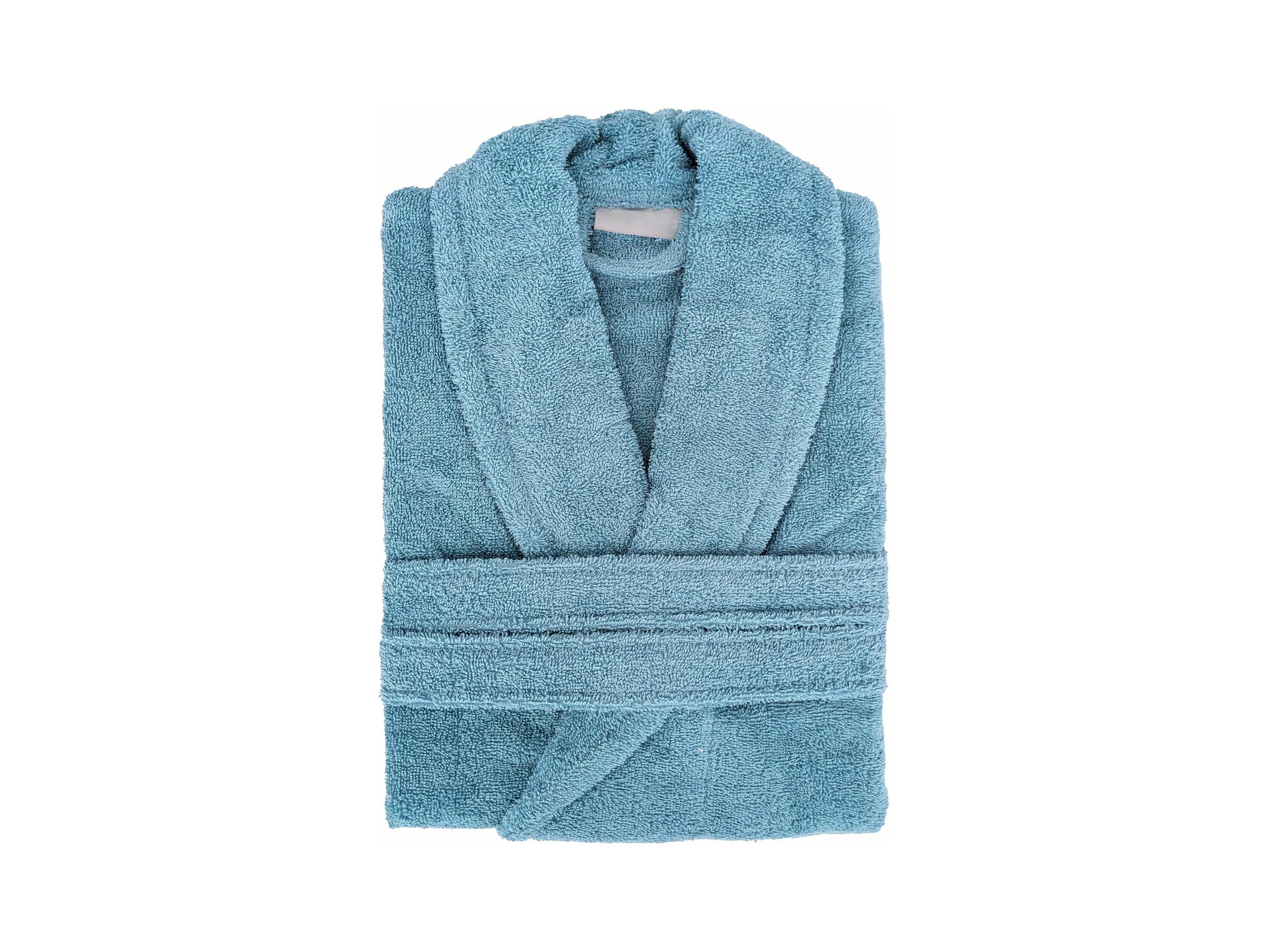 Peignoir col châle NAIA éponge coton taille L bleu cérulé