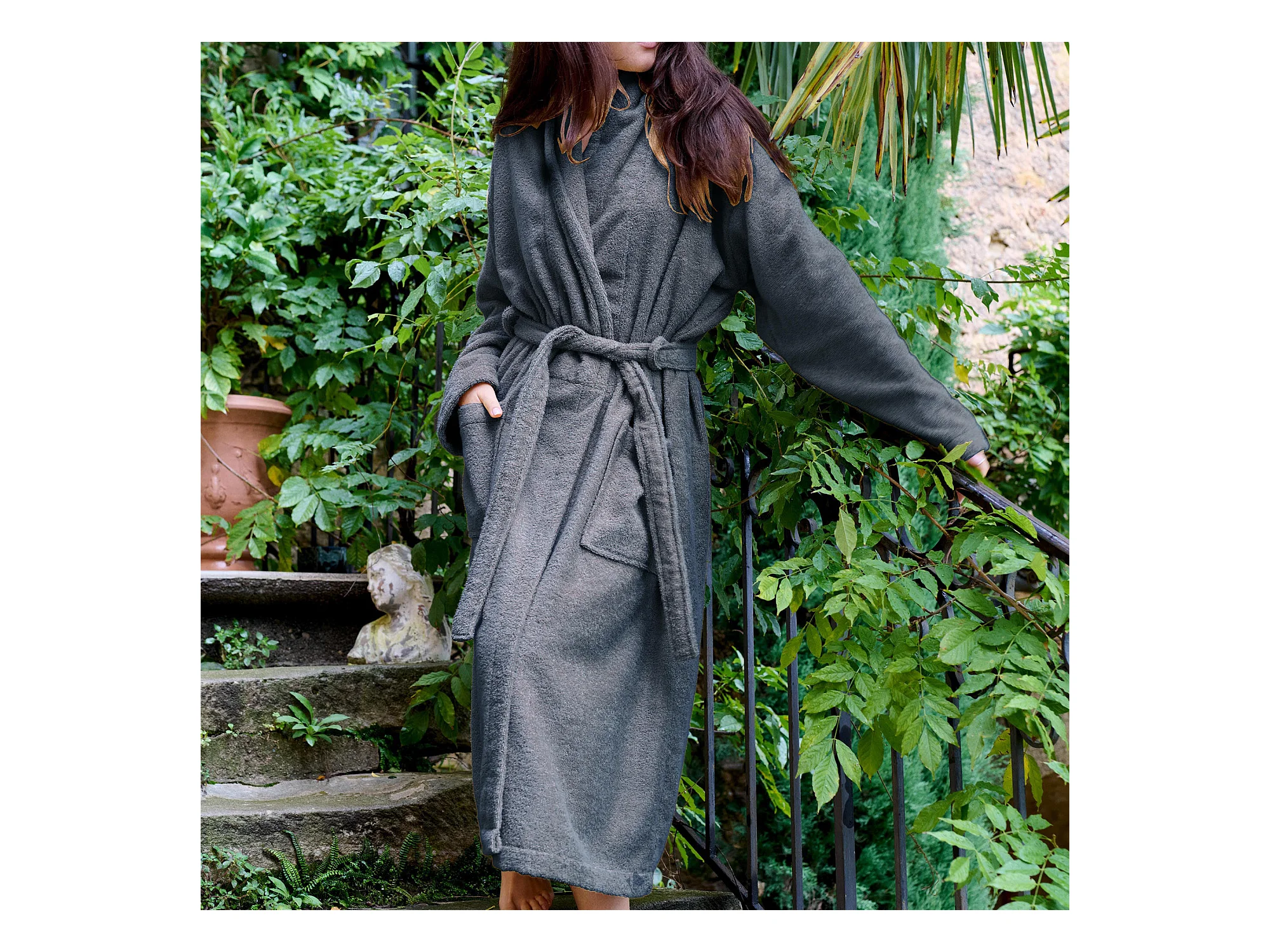 Peignoir col châle NAIA éponge coton taille XXL bleu orage
