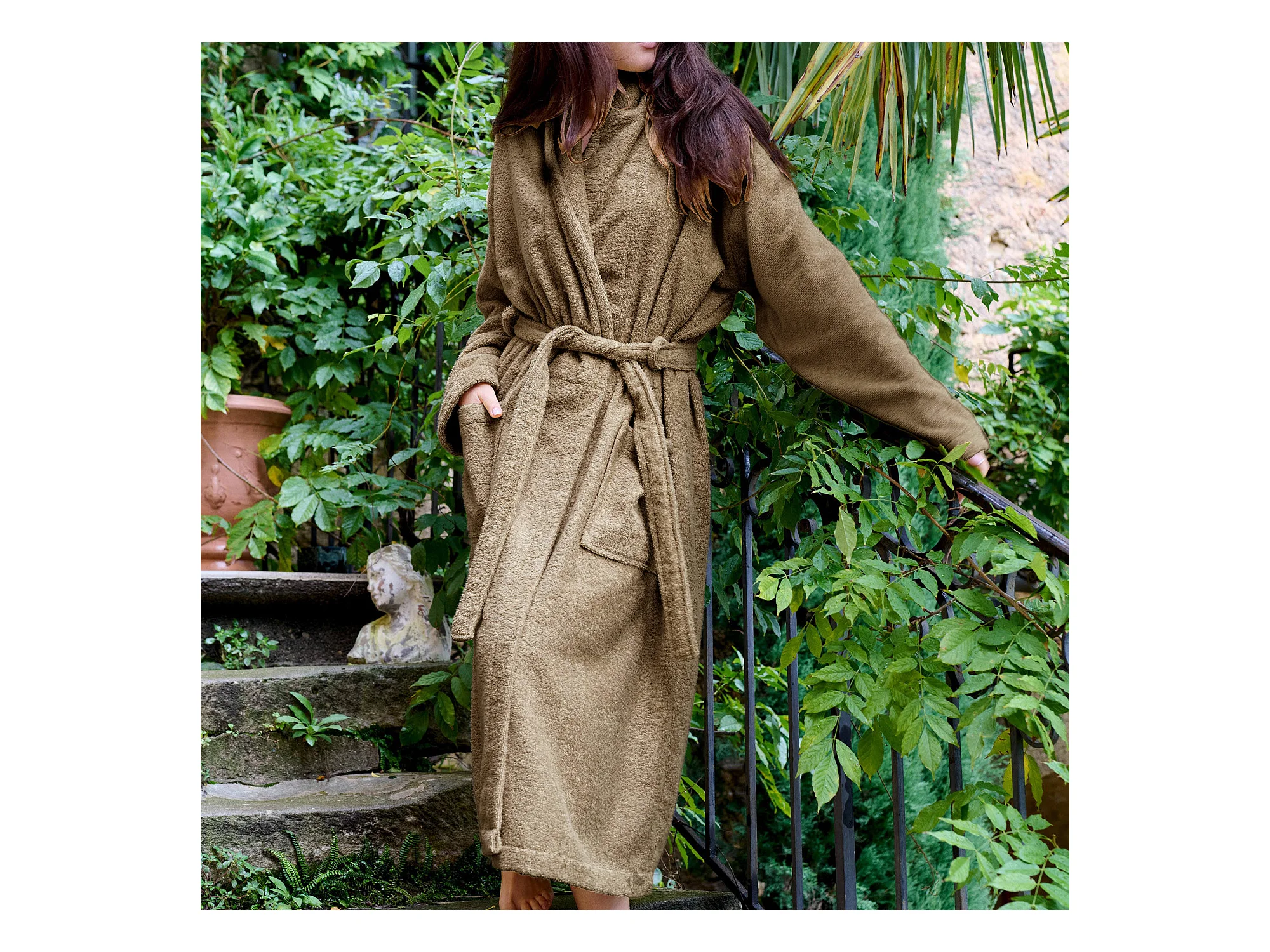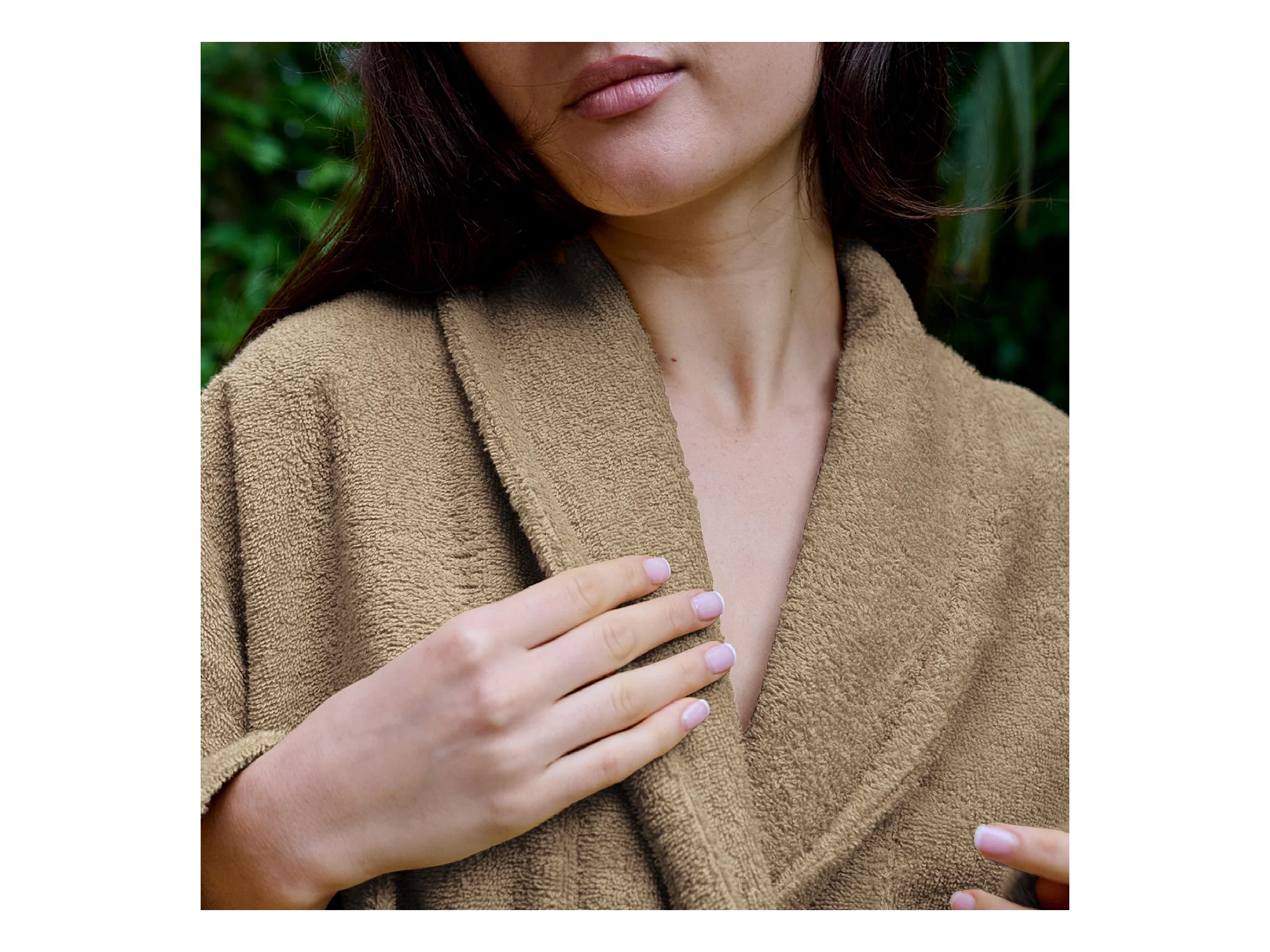 Peignoir col châle NAIA éponge coton taille XXL marron camel