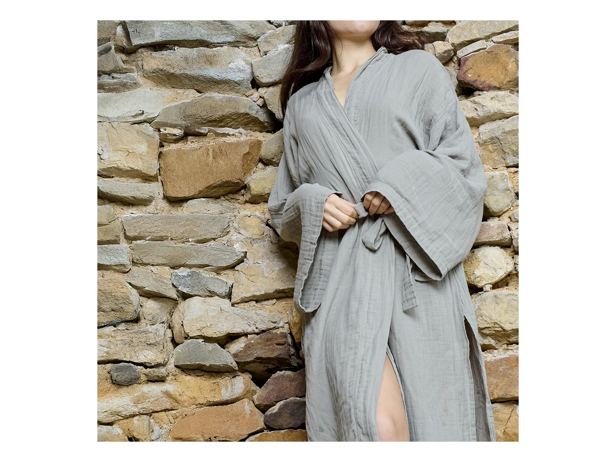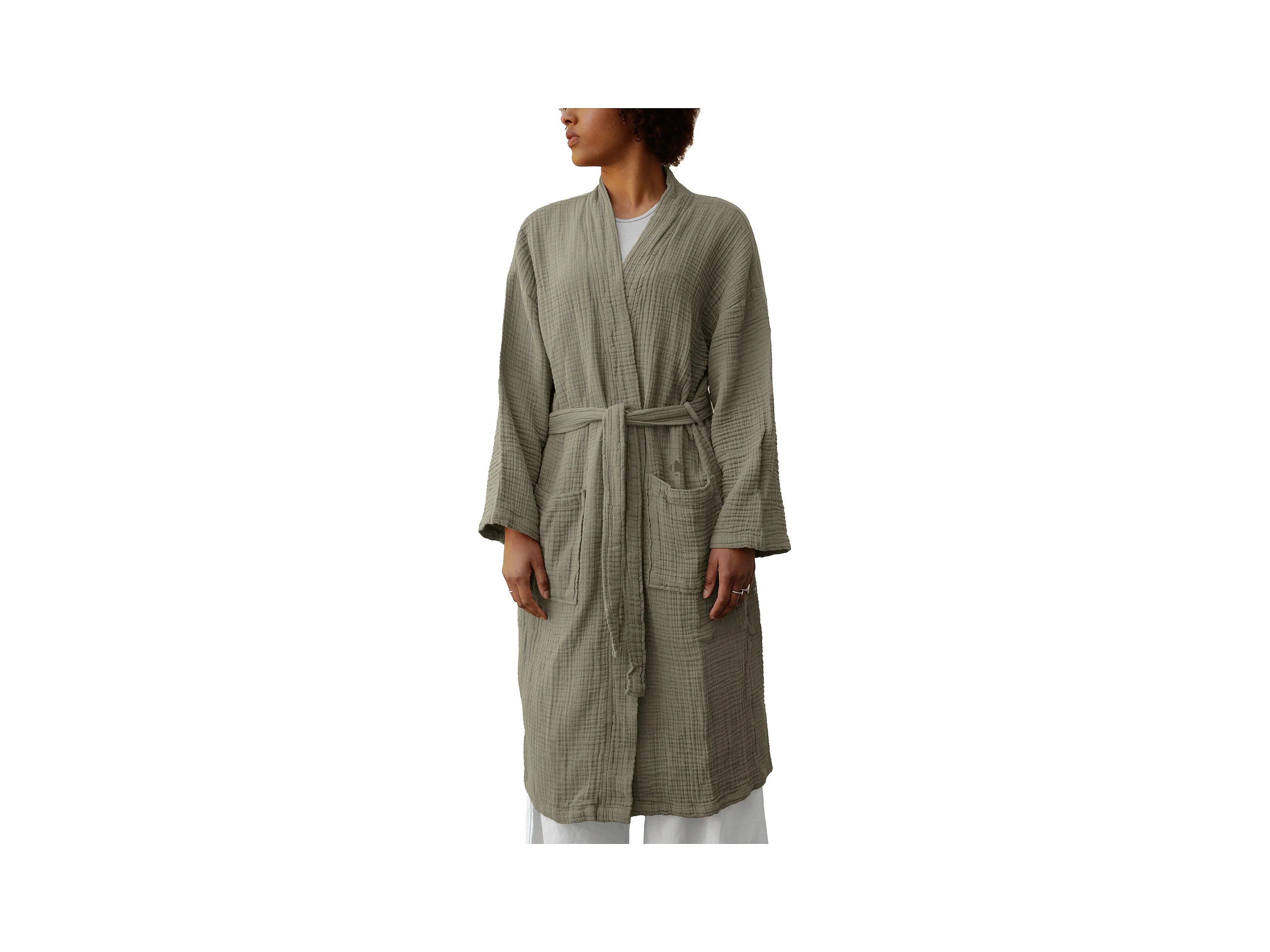 Peignoir col kimono KEA mousseline de coton taille S-M vert kaki