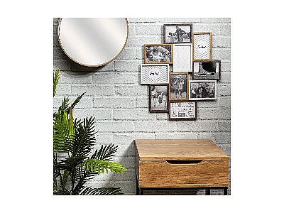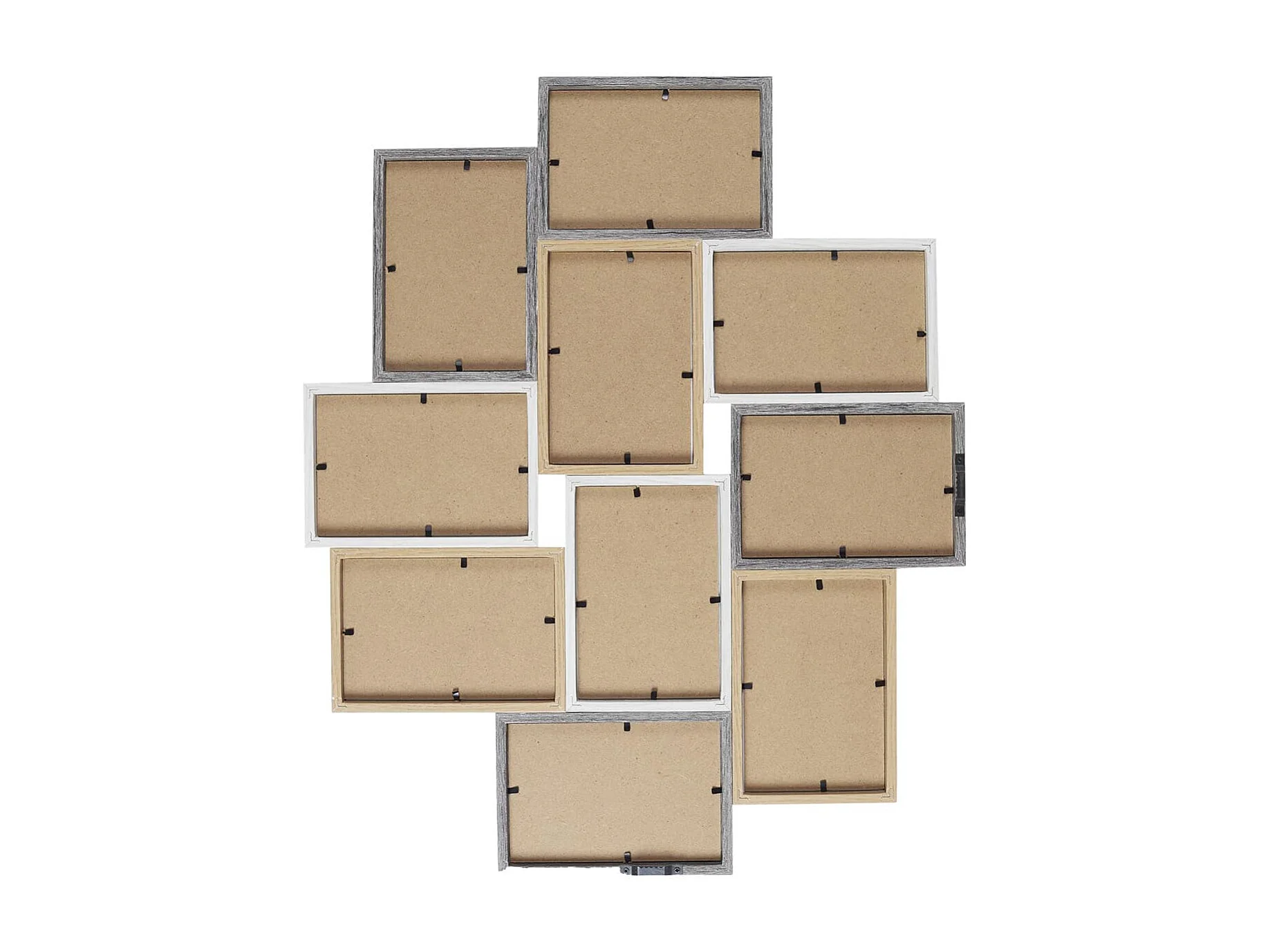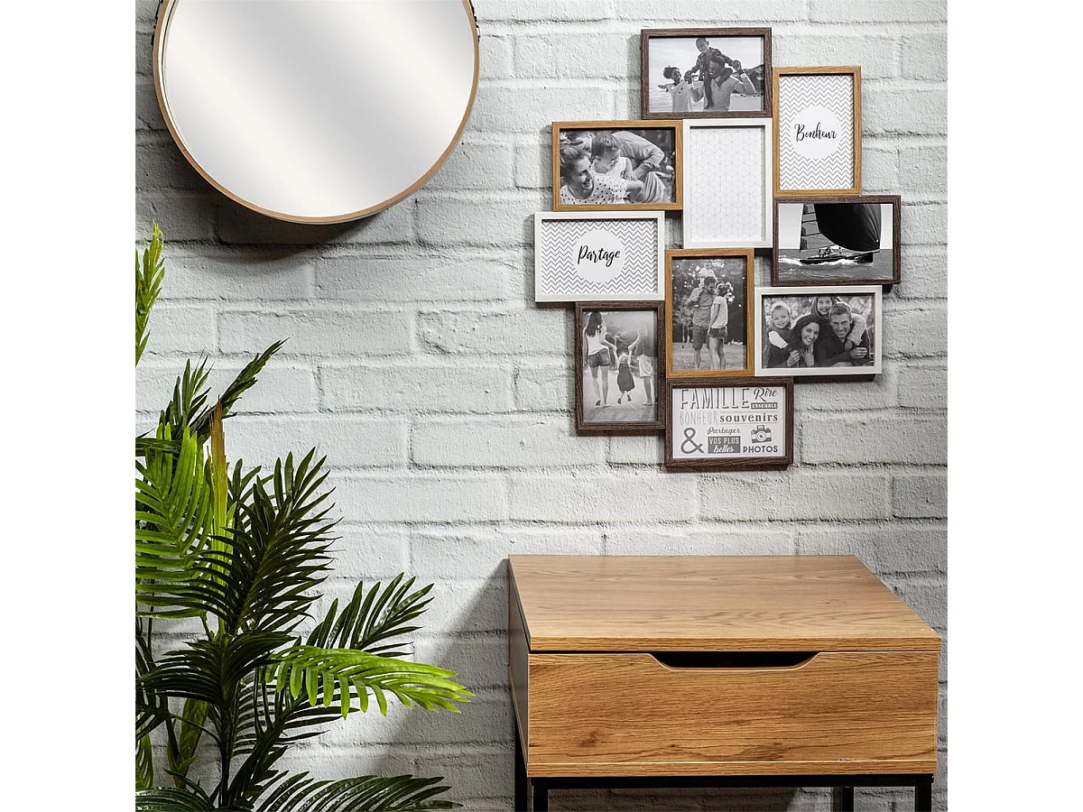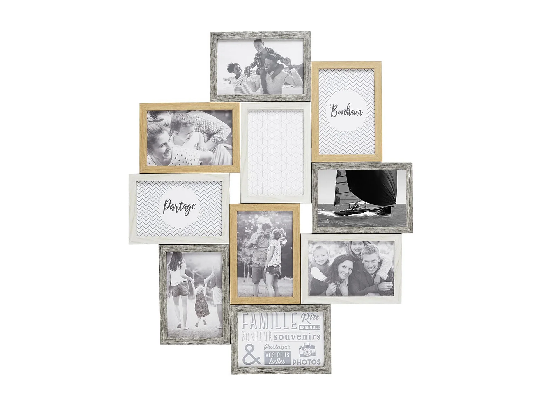 Pêle-mêle 10 Cadres Photo Effet Bois Naturel Blanc et Gris - VASLIA