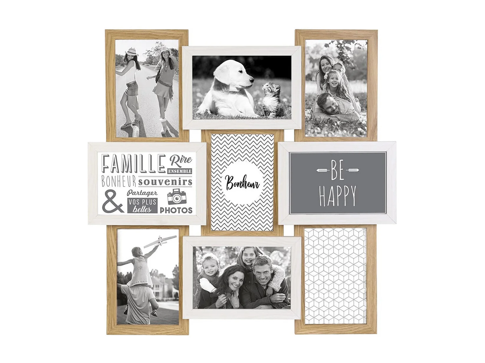 Pêle-mêle 9 Cadres Photo Effet Bois Naturel et Blanc - BATYIA