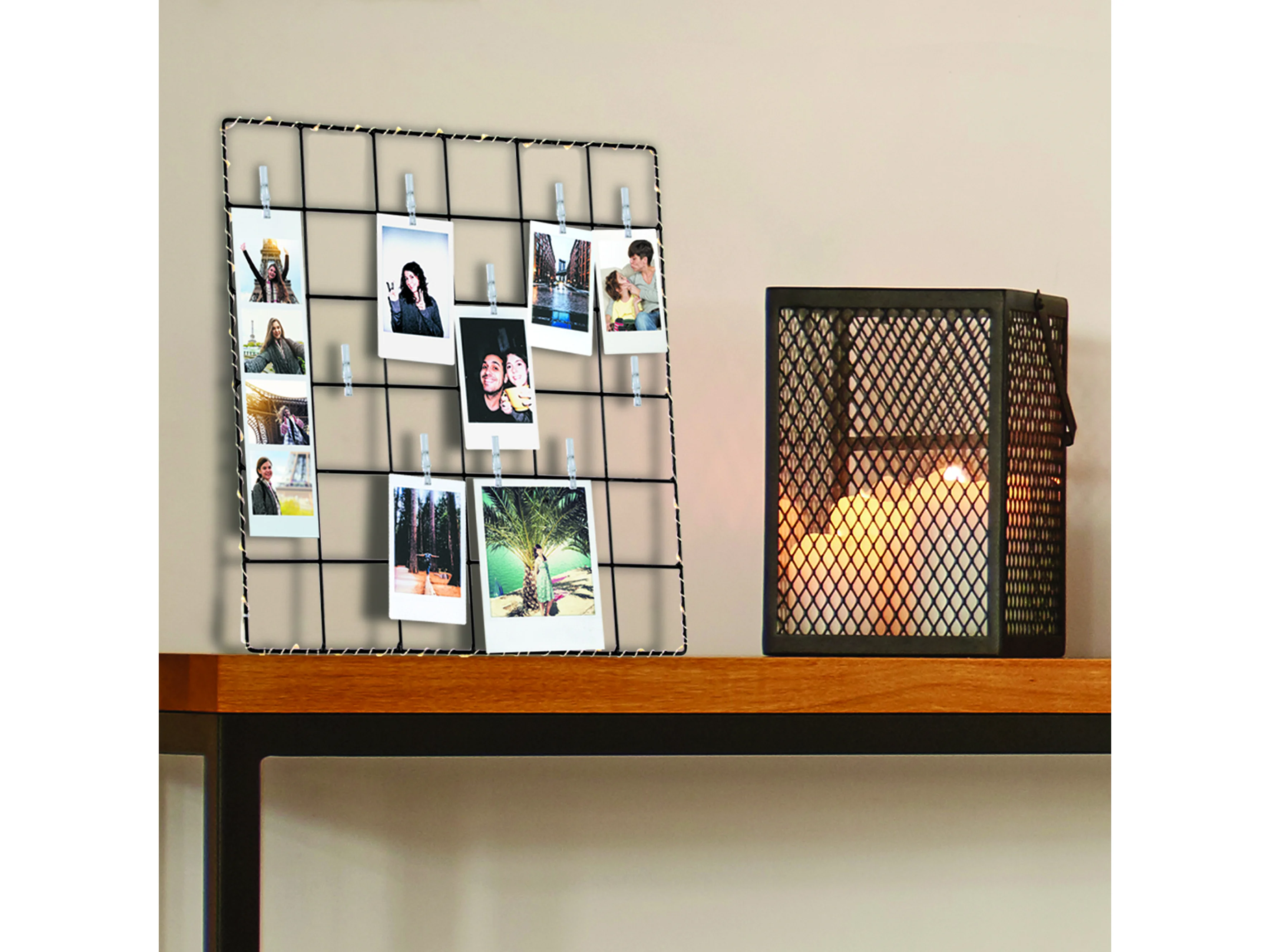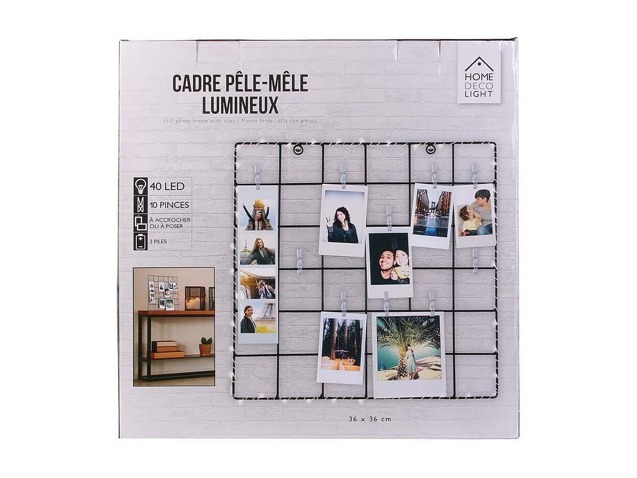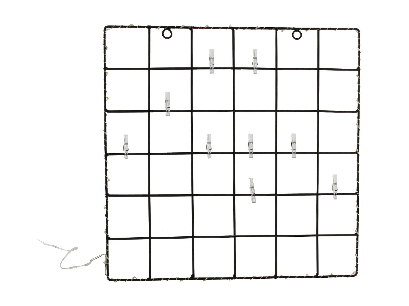 Cadre Photo Pêle-Mêle Lumineux 40 Leds à Pinces Grille Métal Noir - HOLLY