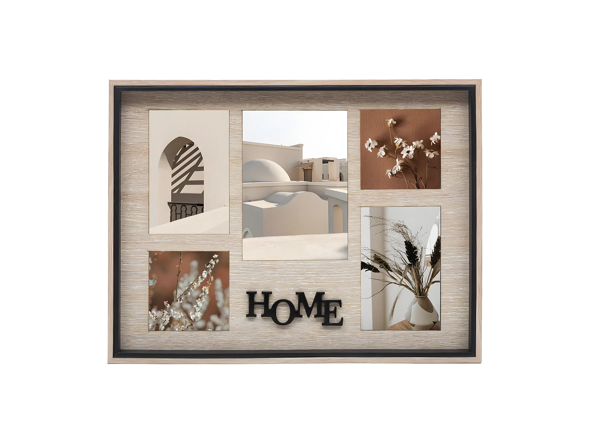 Pêle-mêle Multivues 5 Photos en bois avec déco HOME 41.5 x 31.8 cm