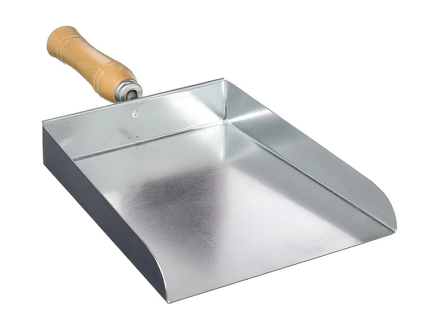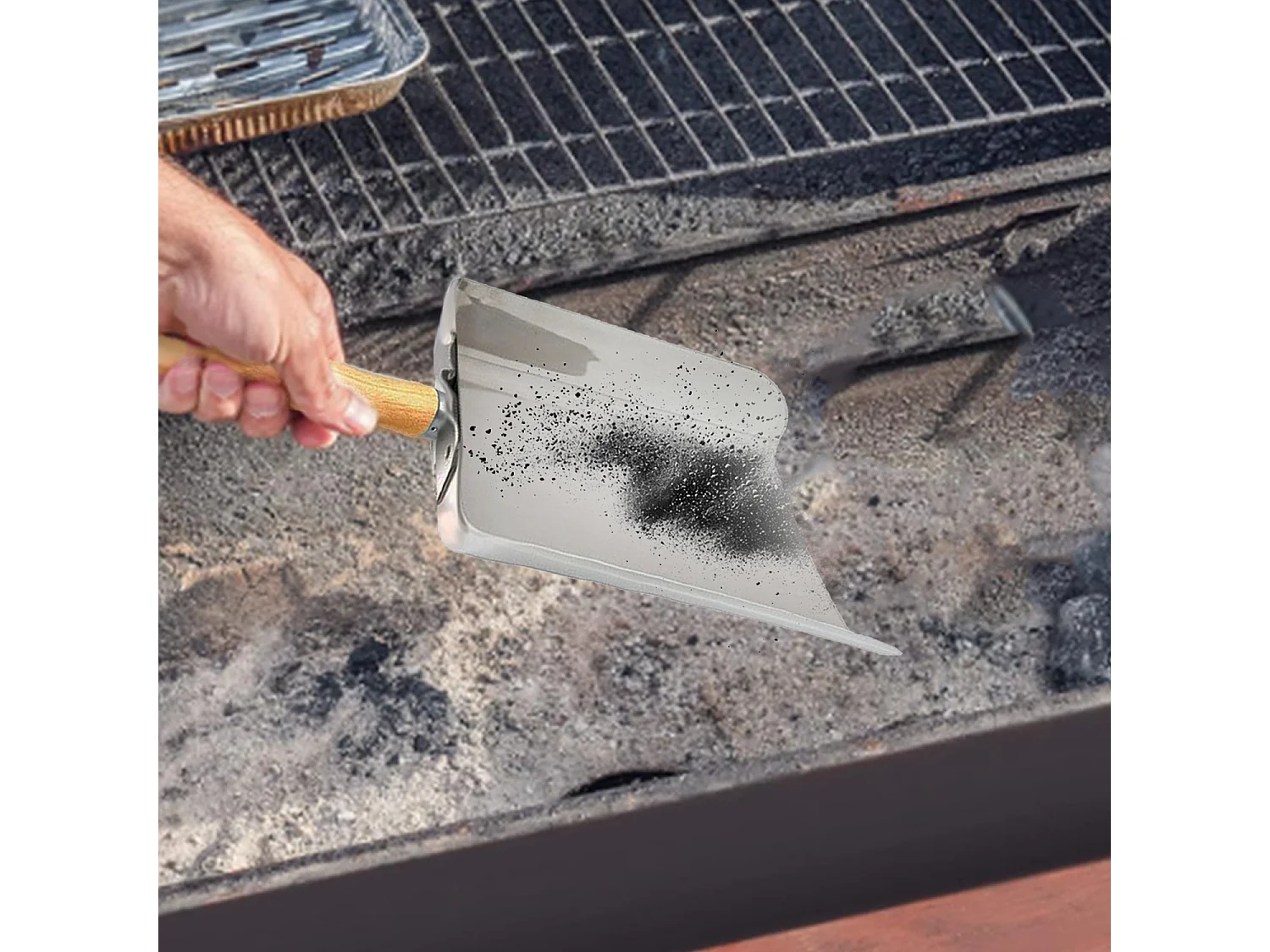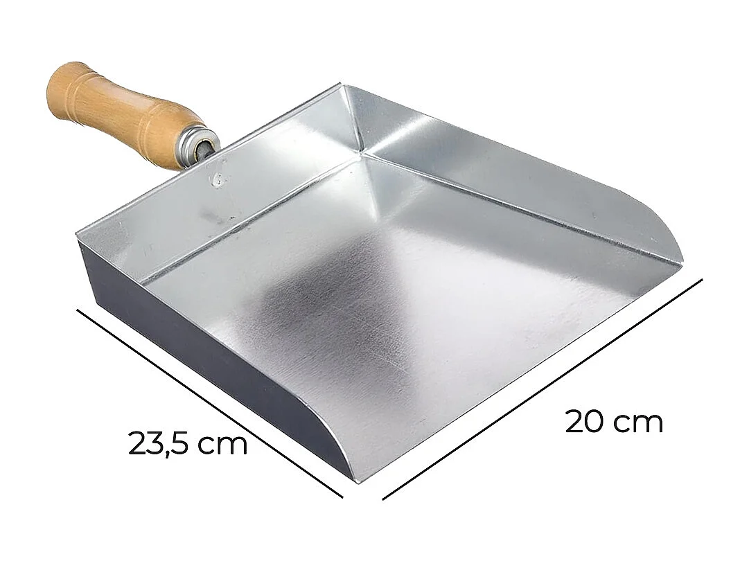 Pelle à cendre, charbon pour cheminée, Ramasse poussière en métal avec poignée en Bois couleur Gris - 23,5 x 20 cm