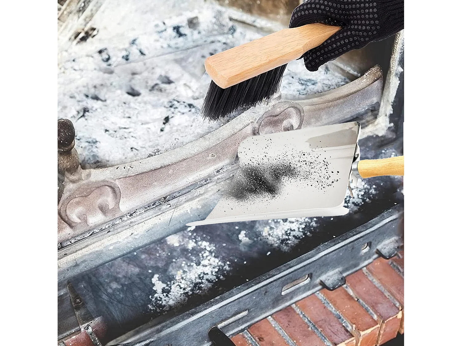 Pelle et balayette pour cheminée en étain et bois (Lot de 2)