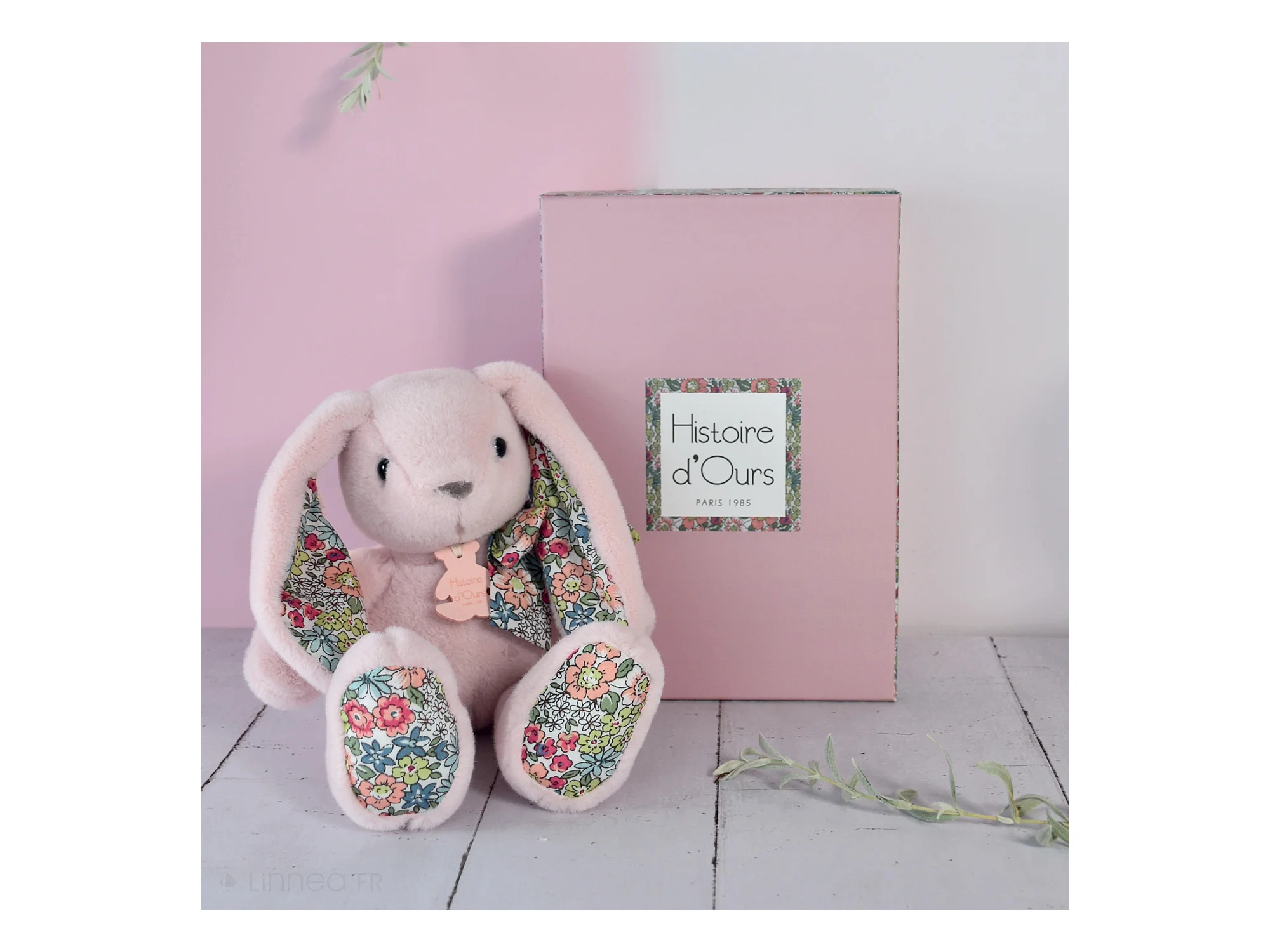 Doudou plat lapin 27 cm collection LAPIN CERISE rose