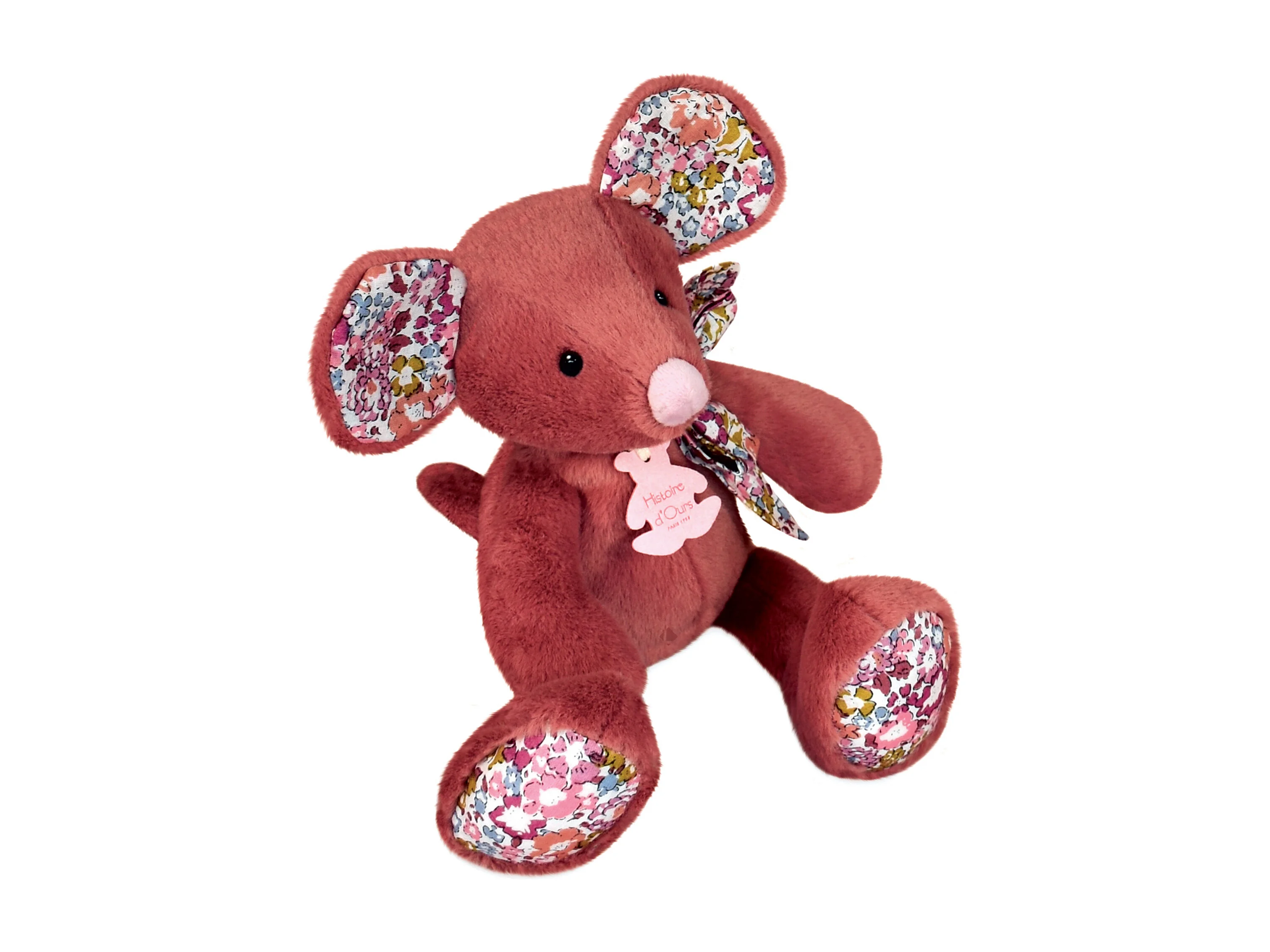 Peluche 25 cm polyester COPAINS CALINS souris rouge terracotta