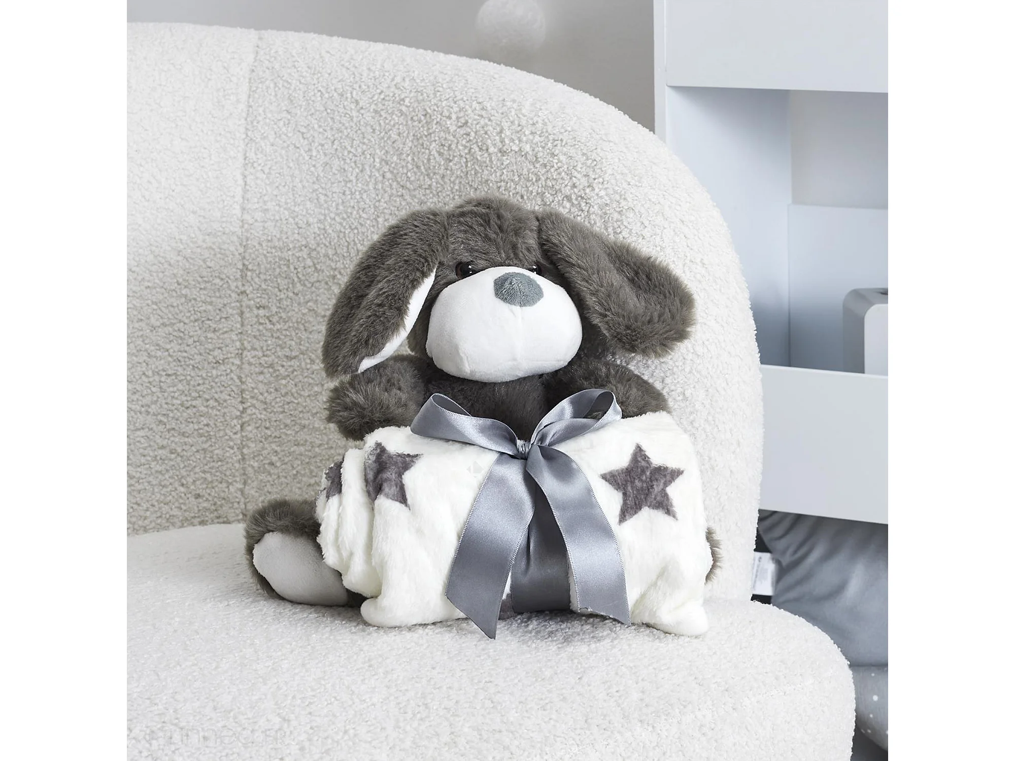 Peluche chien gris 20cm avec plaid 70x70 cm collection LITTLE CANDY gris