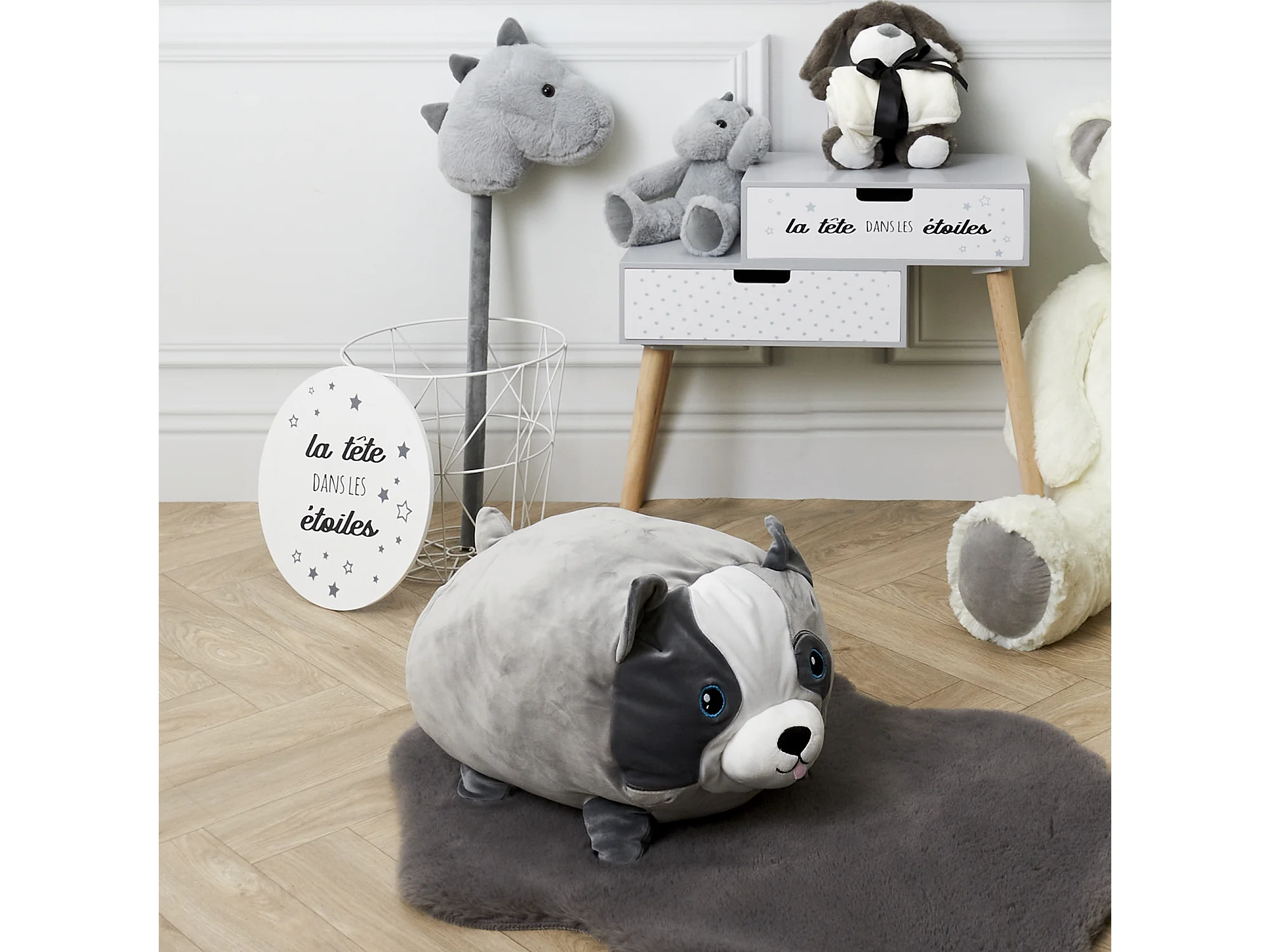 Peluche Coussin Chien 3ocm Gris, Blanc
