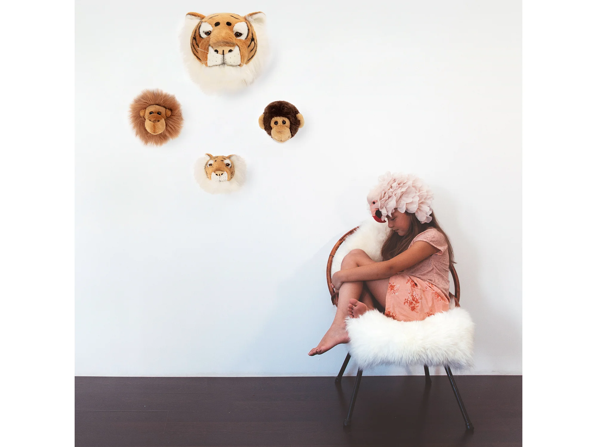 Peluche trophée mini 3 petites têtes collection Safari