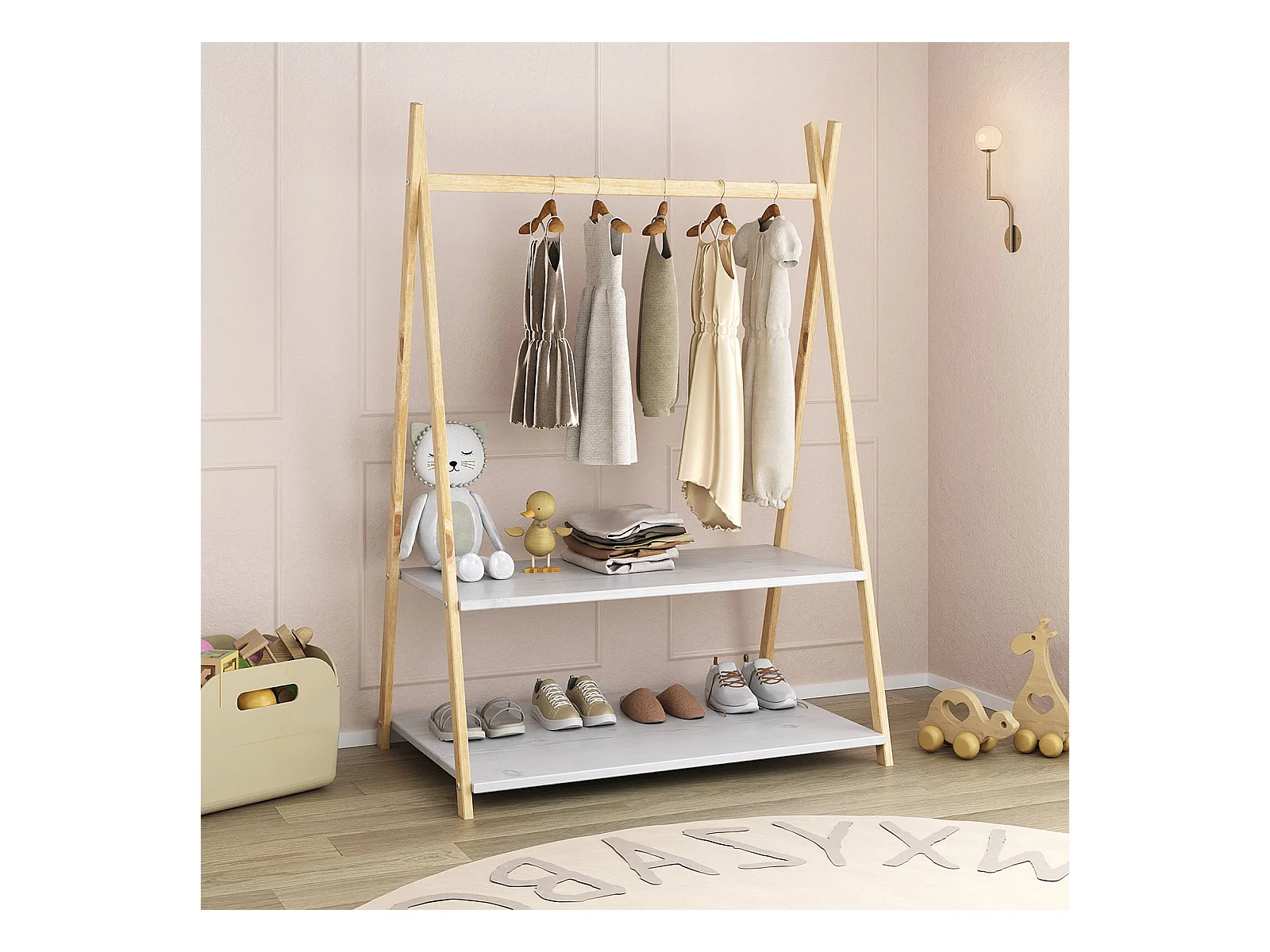Porte vêtement enfant en bois ESSENTIEL Blanc et Hêtre Brut 50 x 30 x 130 cm