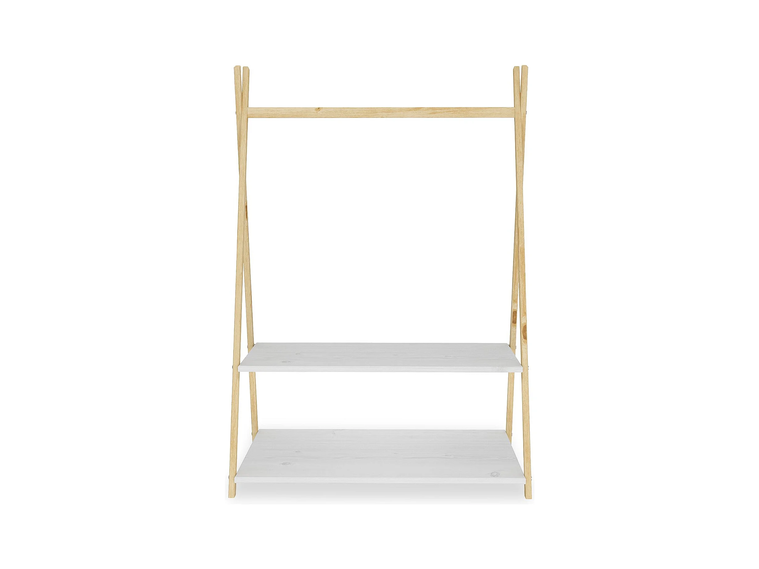 Penderie enfant DANILO avec tringle à vêtements et deux étagères, design tipi, en bois massif, coloris naturel/ blanc