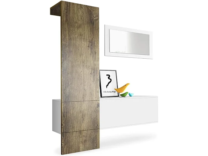 Penderie Meuble d’entrée Blanc Mat et chêne ribbeck (156 x 193 x 35 cm)