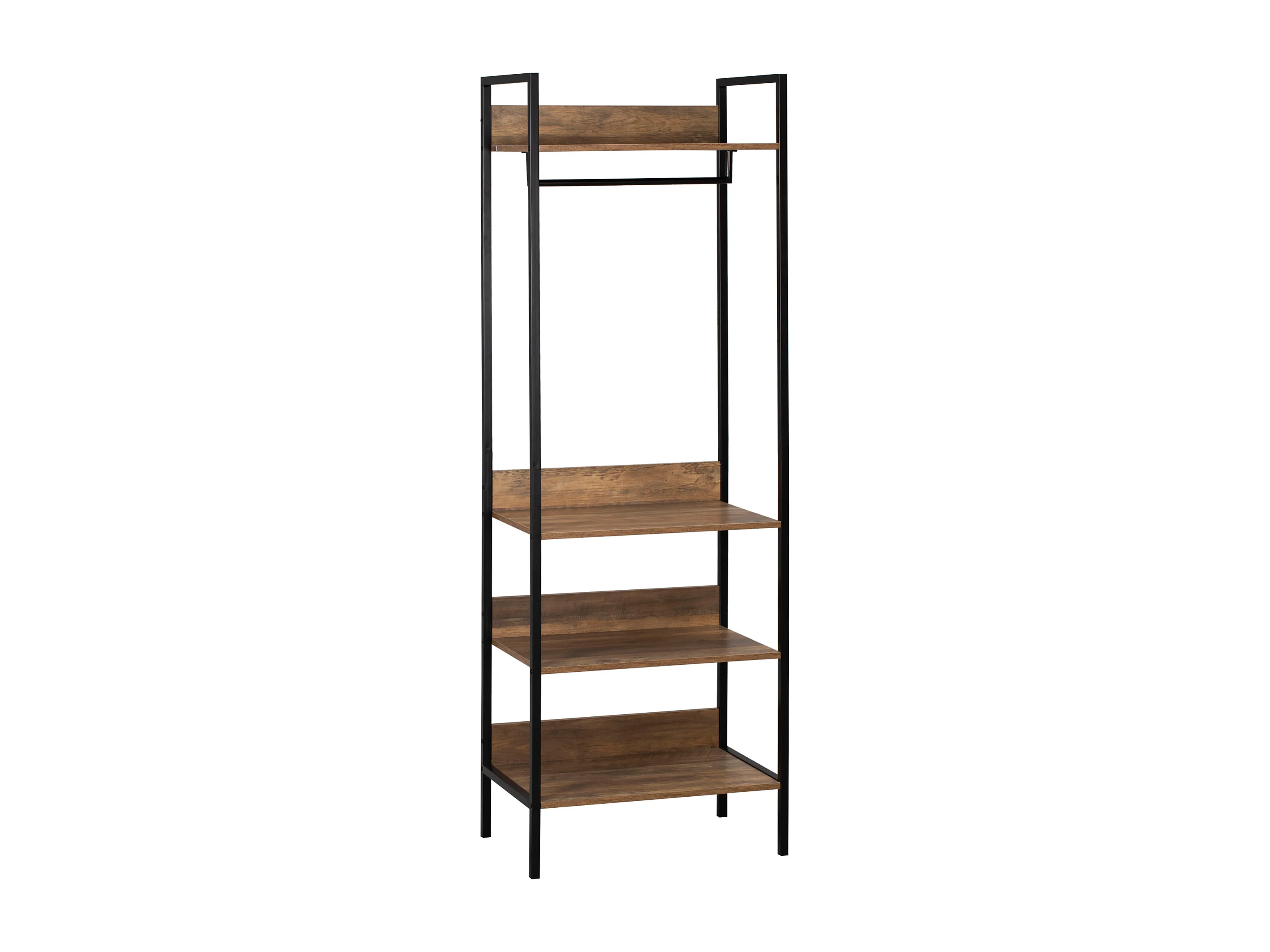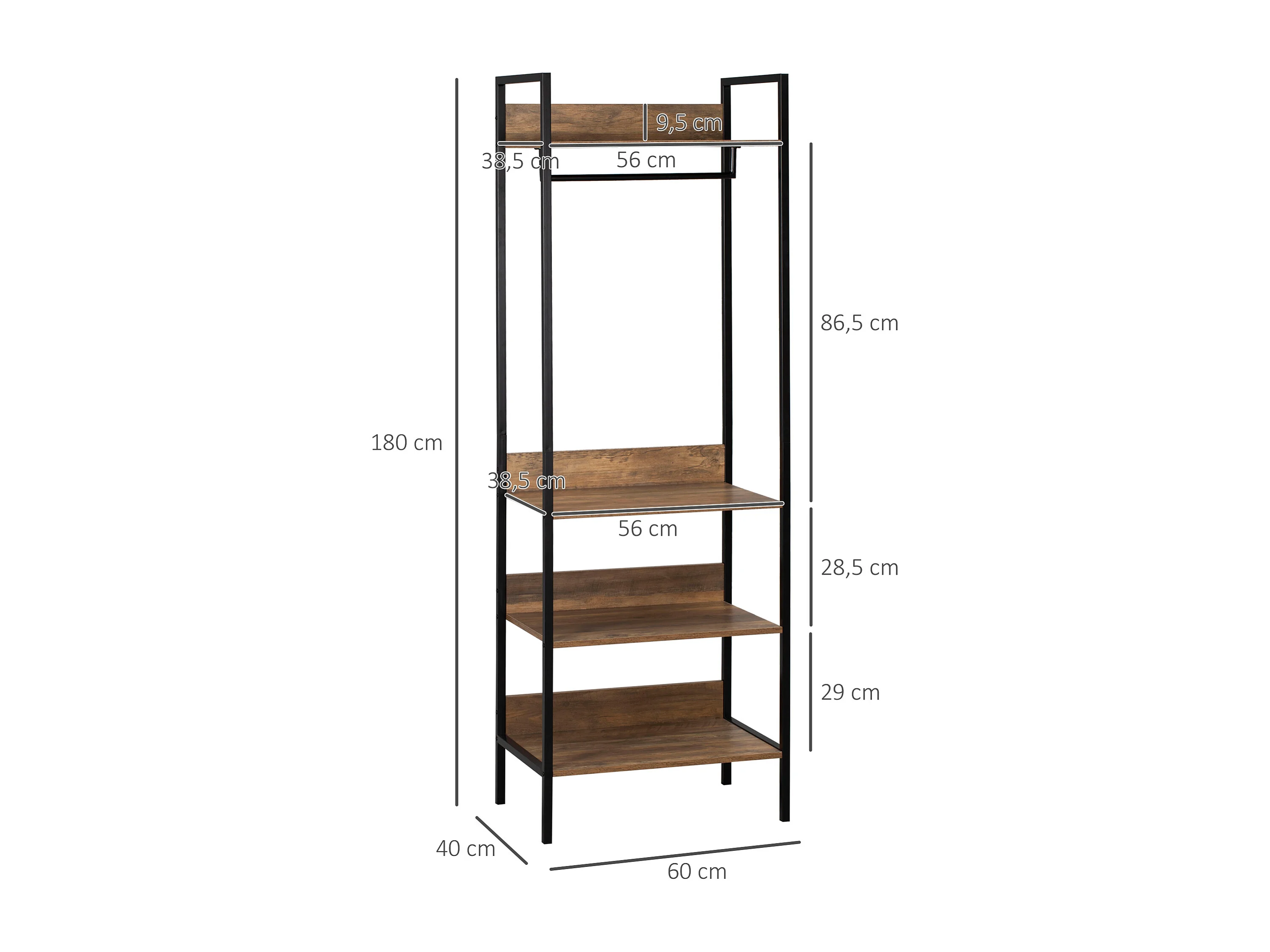 Penderie portant à vêtements style industriel 4 étagères barre penderie métal noir panneaux aspect bois
