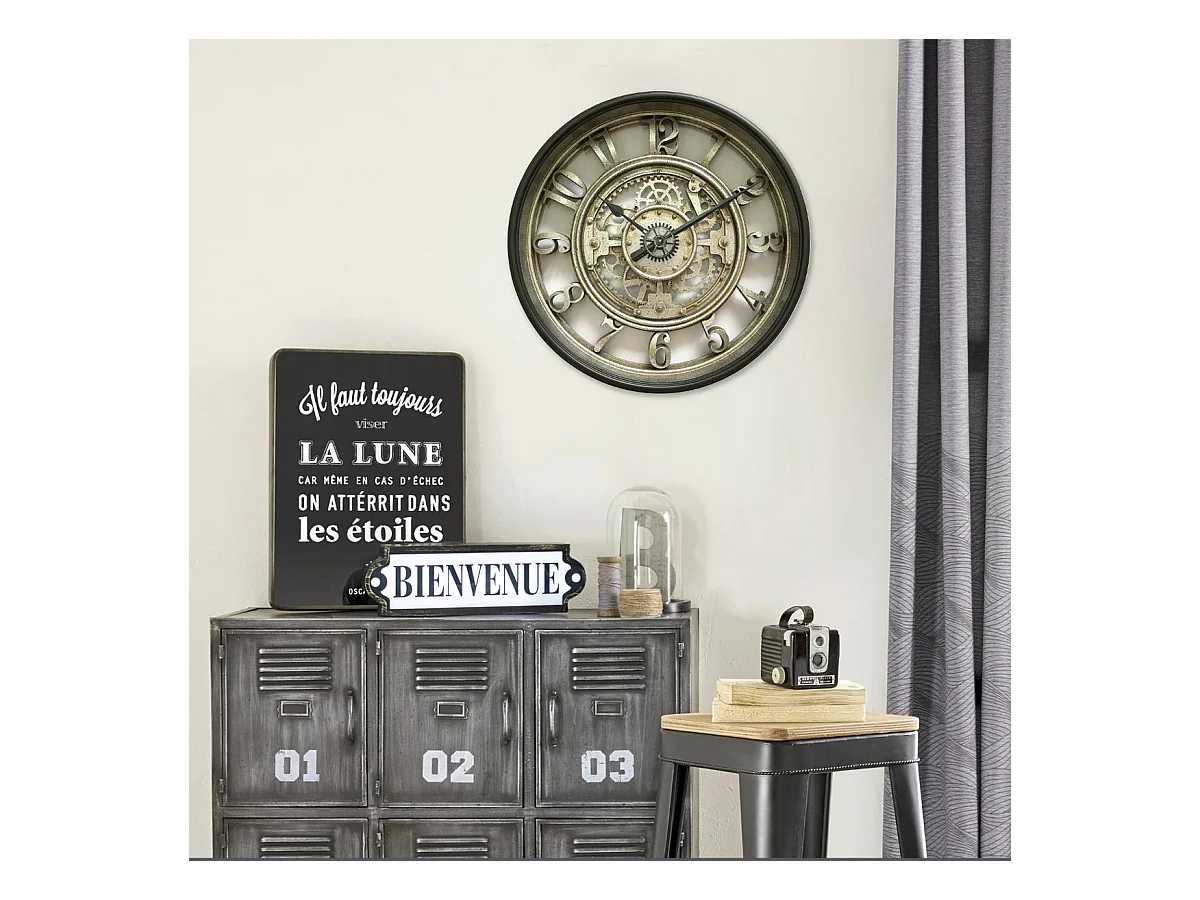 Horloge Murale Déco "Hôtel" 99cm Gris
