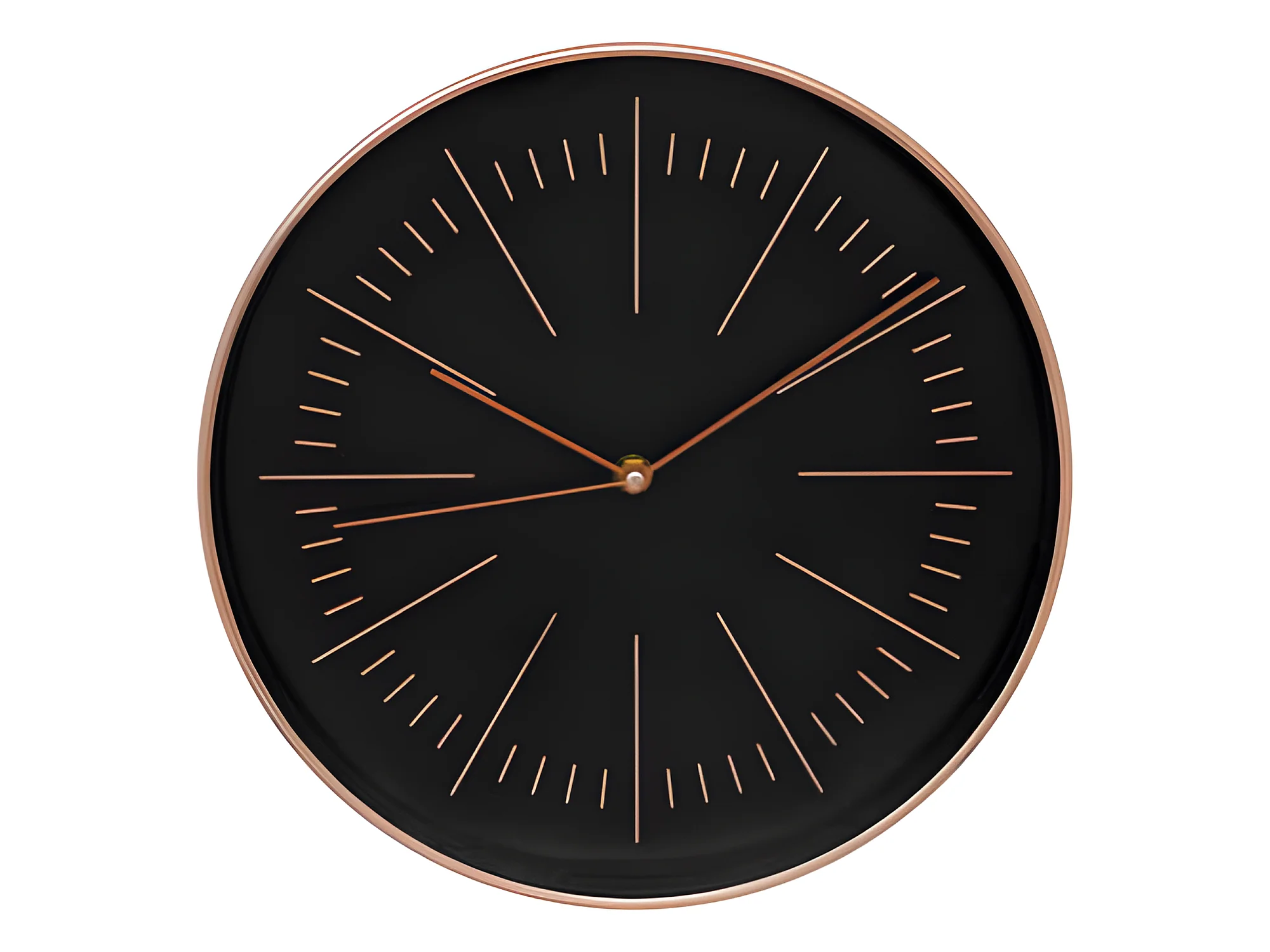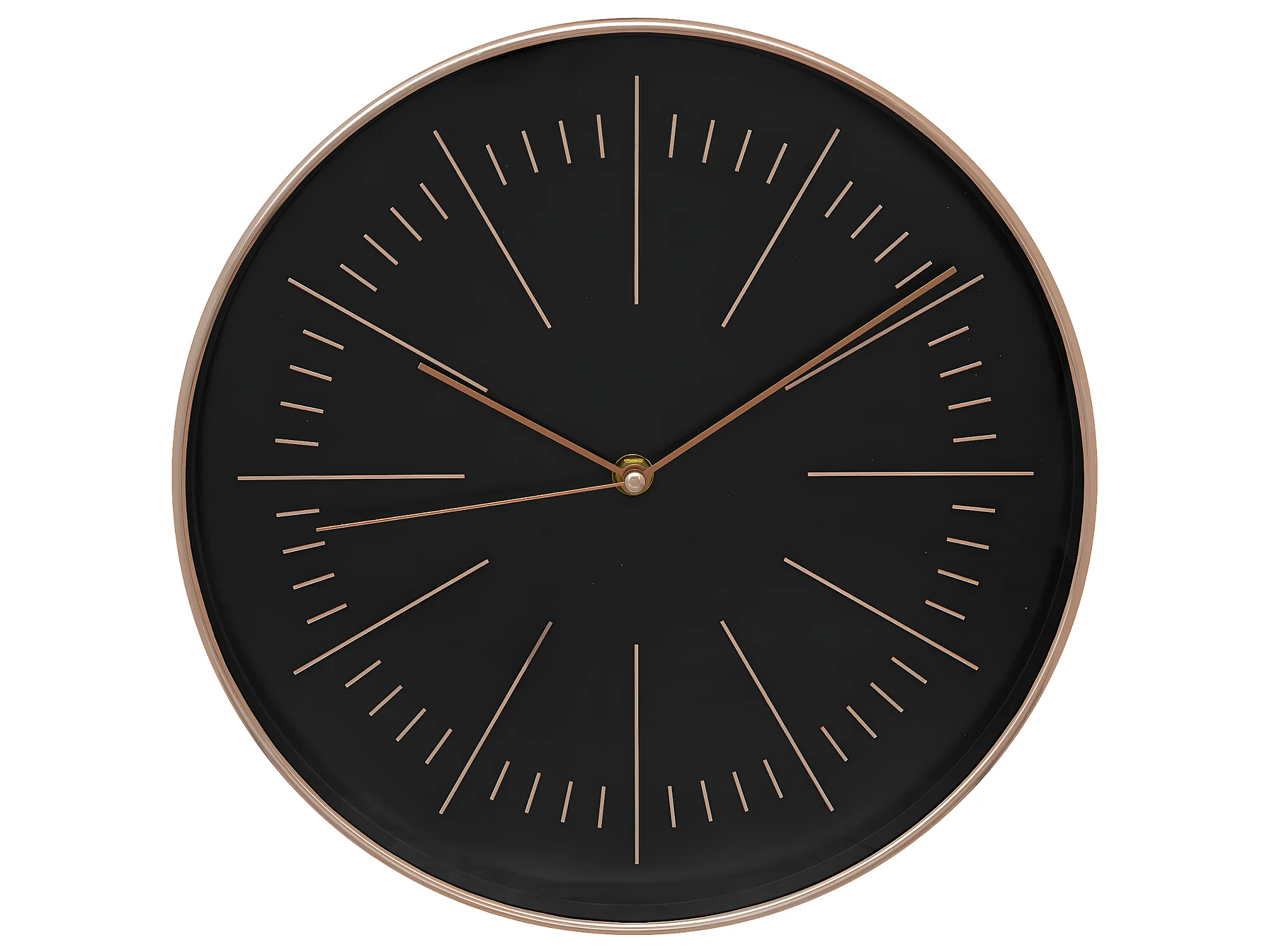 Pendule murale moderne bicolore Noir et Cuivre D 30 cm