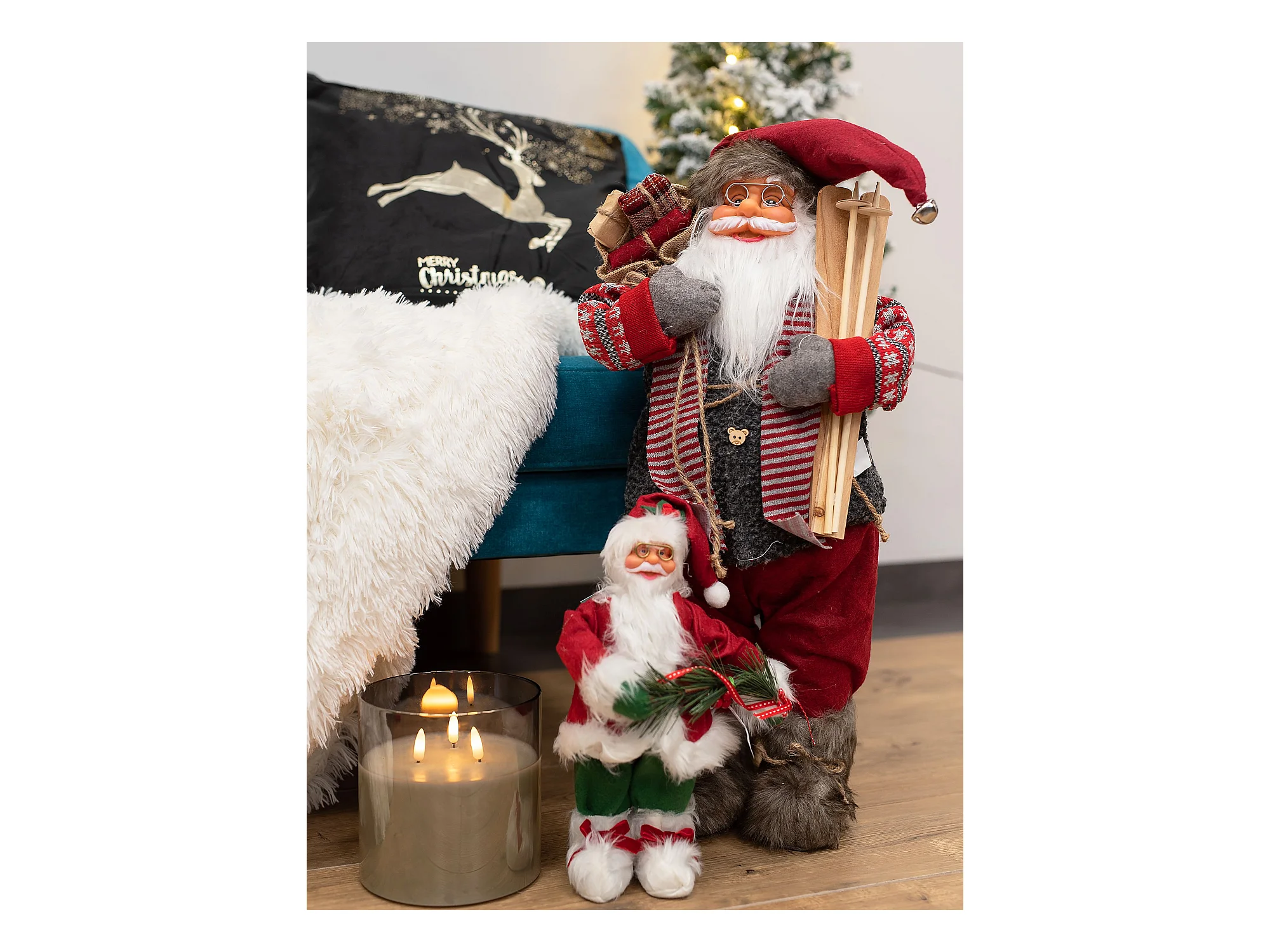 Père Noël sur Luge "Soir" 28cm Rouge & Marron