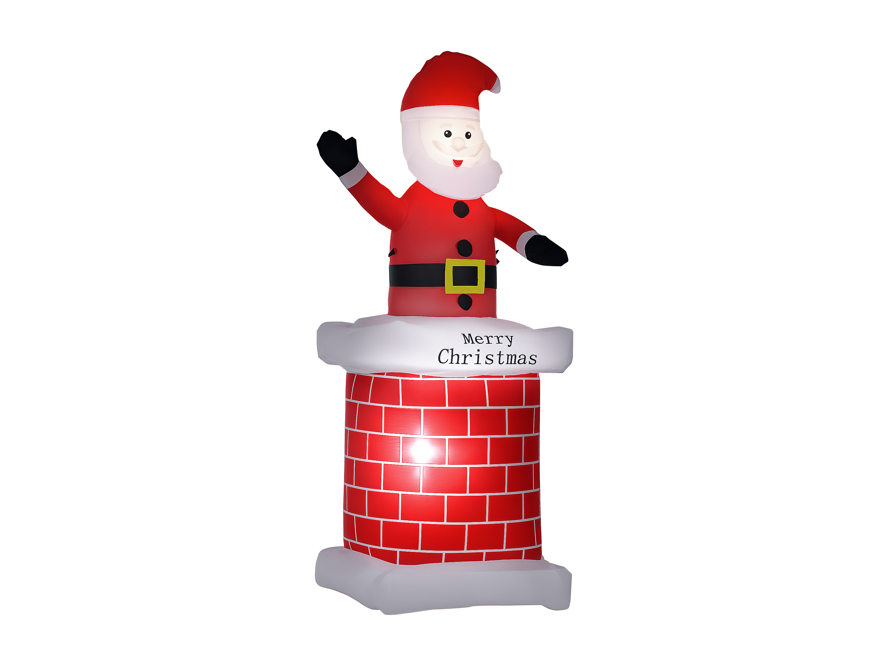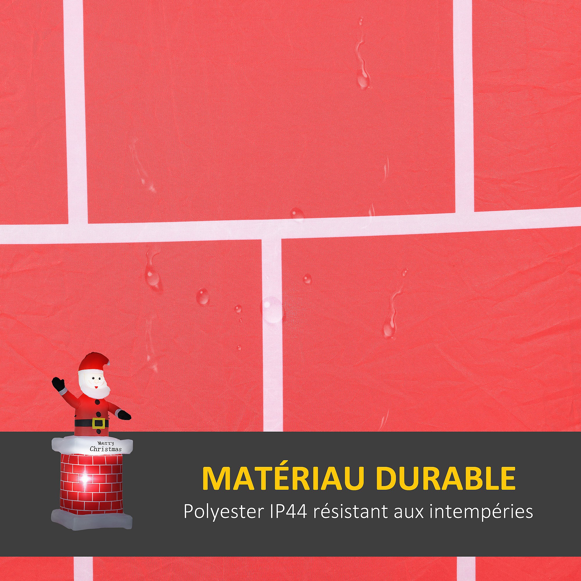 Père Noël gonflable avec cheminée lumineux LED hauteur 210 cm polyester imperméable rouge blanc noir