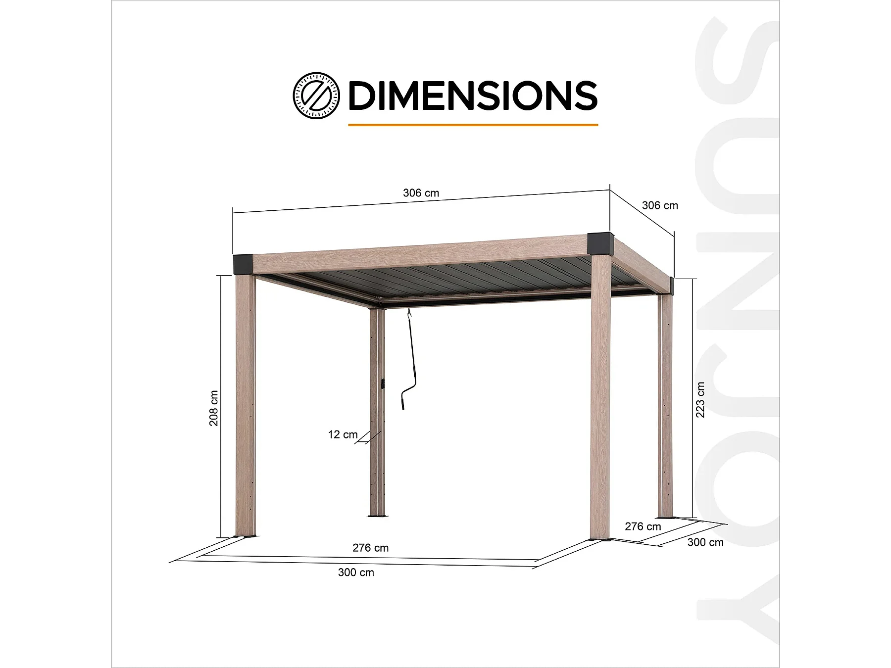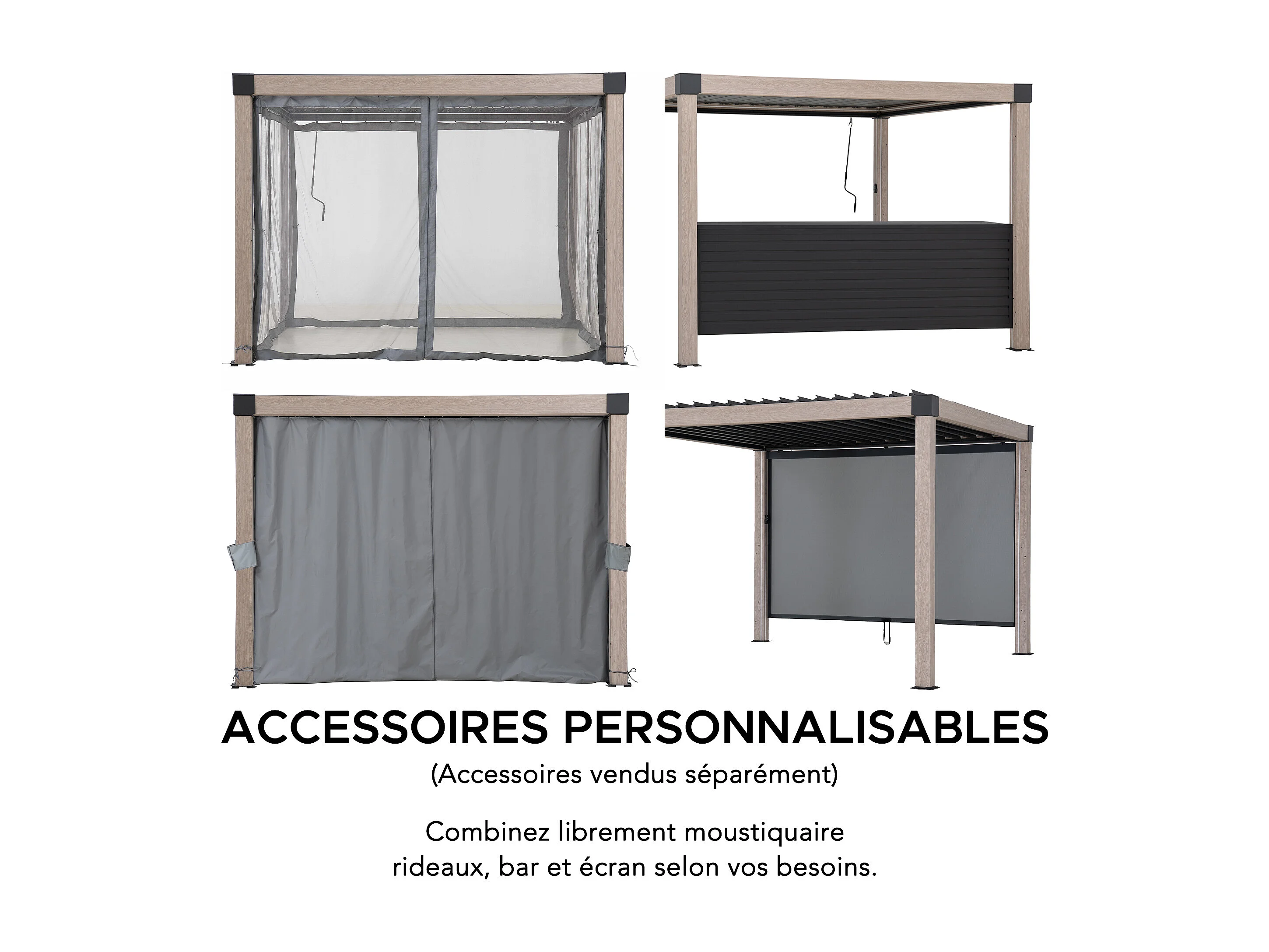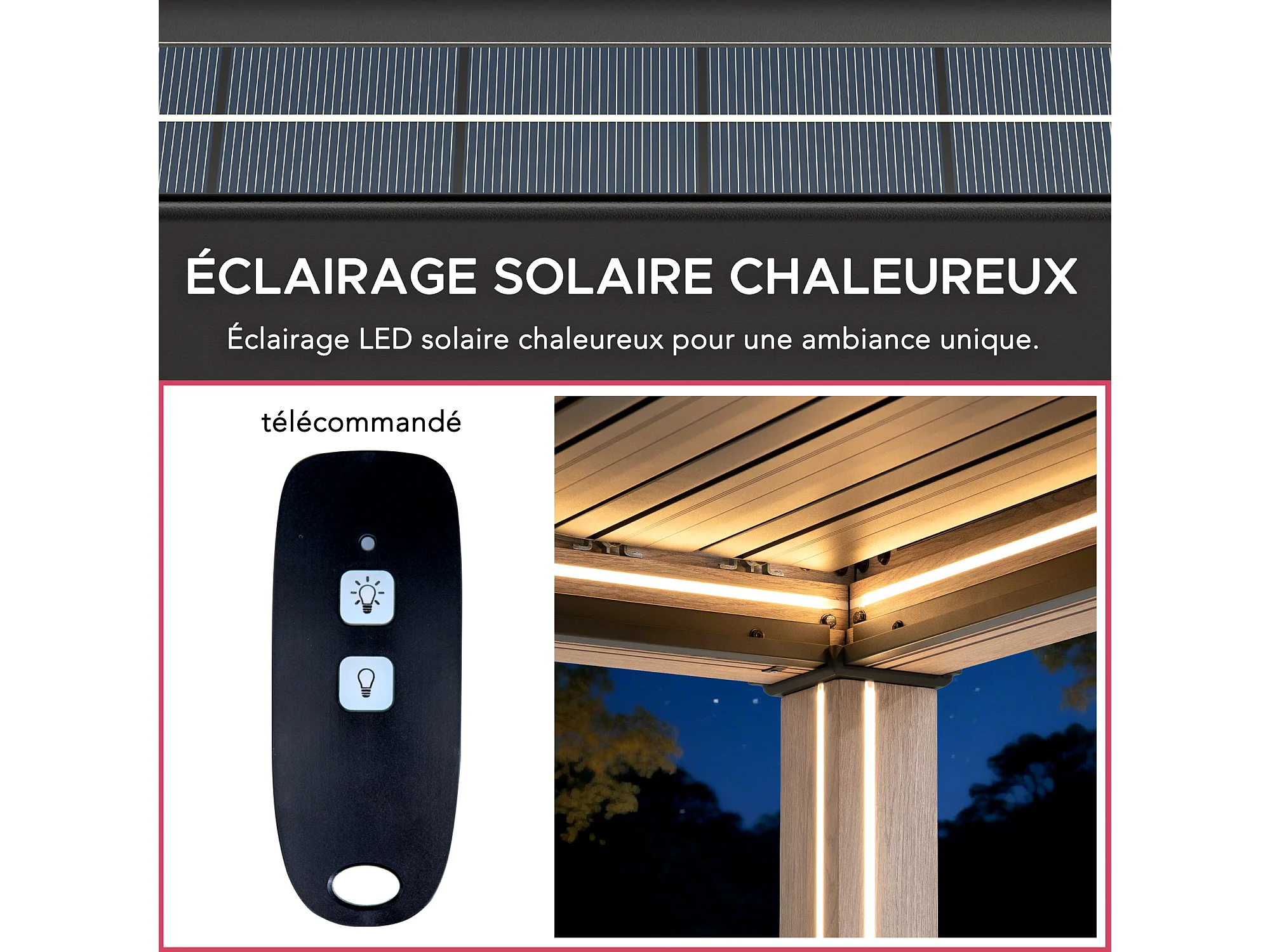 Pergola à lames avec éclairage LED solaire et toit réglable en similibois Matterhorn 306 cm x 306 cm