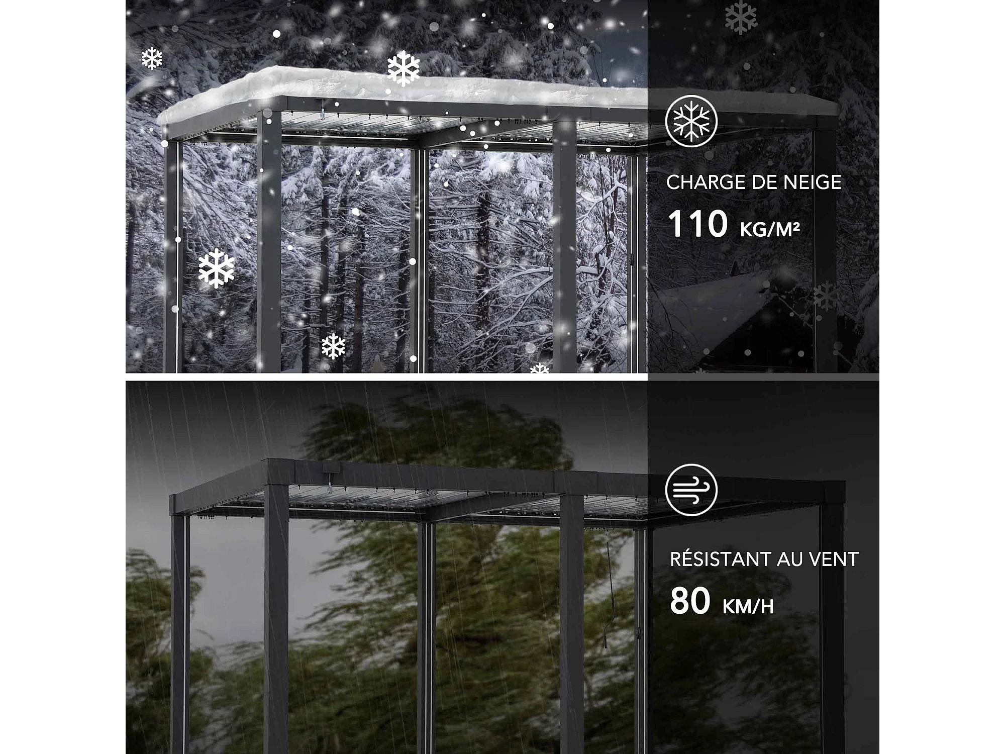 Pergola à lames avec éclairage LED solaire et toit réglable Matterhorn 406 cm x 306 cm