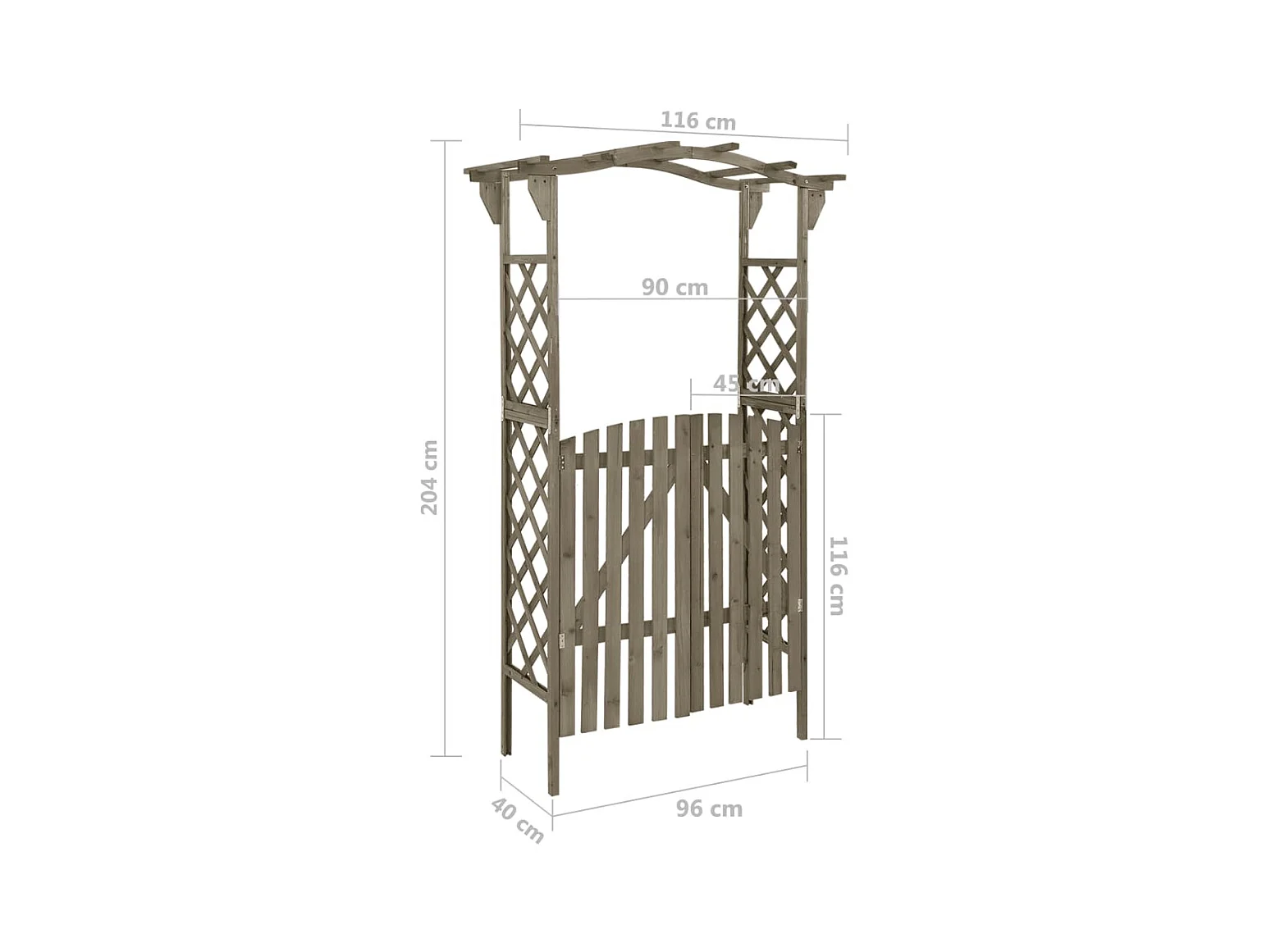 Pergola avec portail 116x40x204 Gris Bois de sapin massif