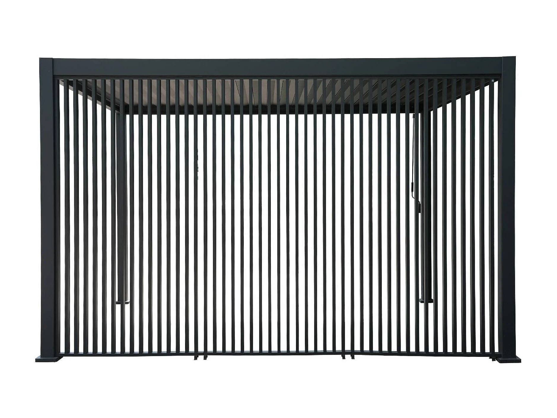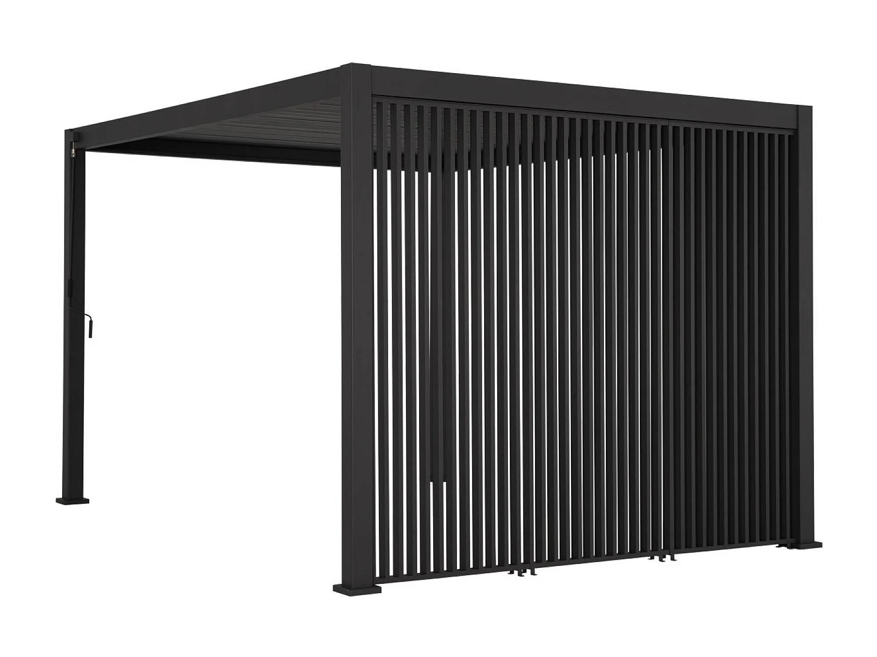 Pergola bioclimatique. aluminium. 3x4m. lames orientables + persienne verticale 130cm anthracite