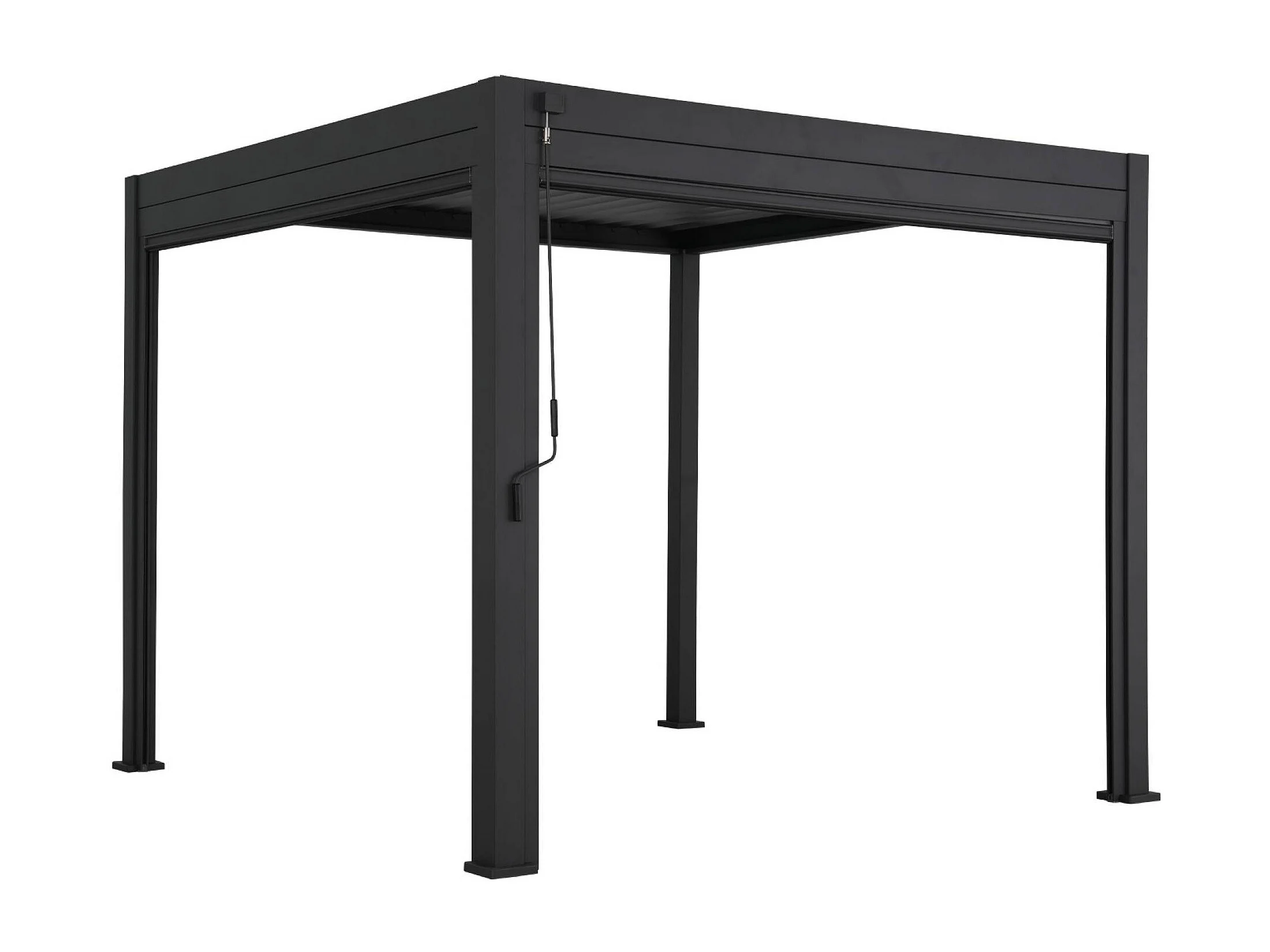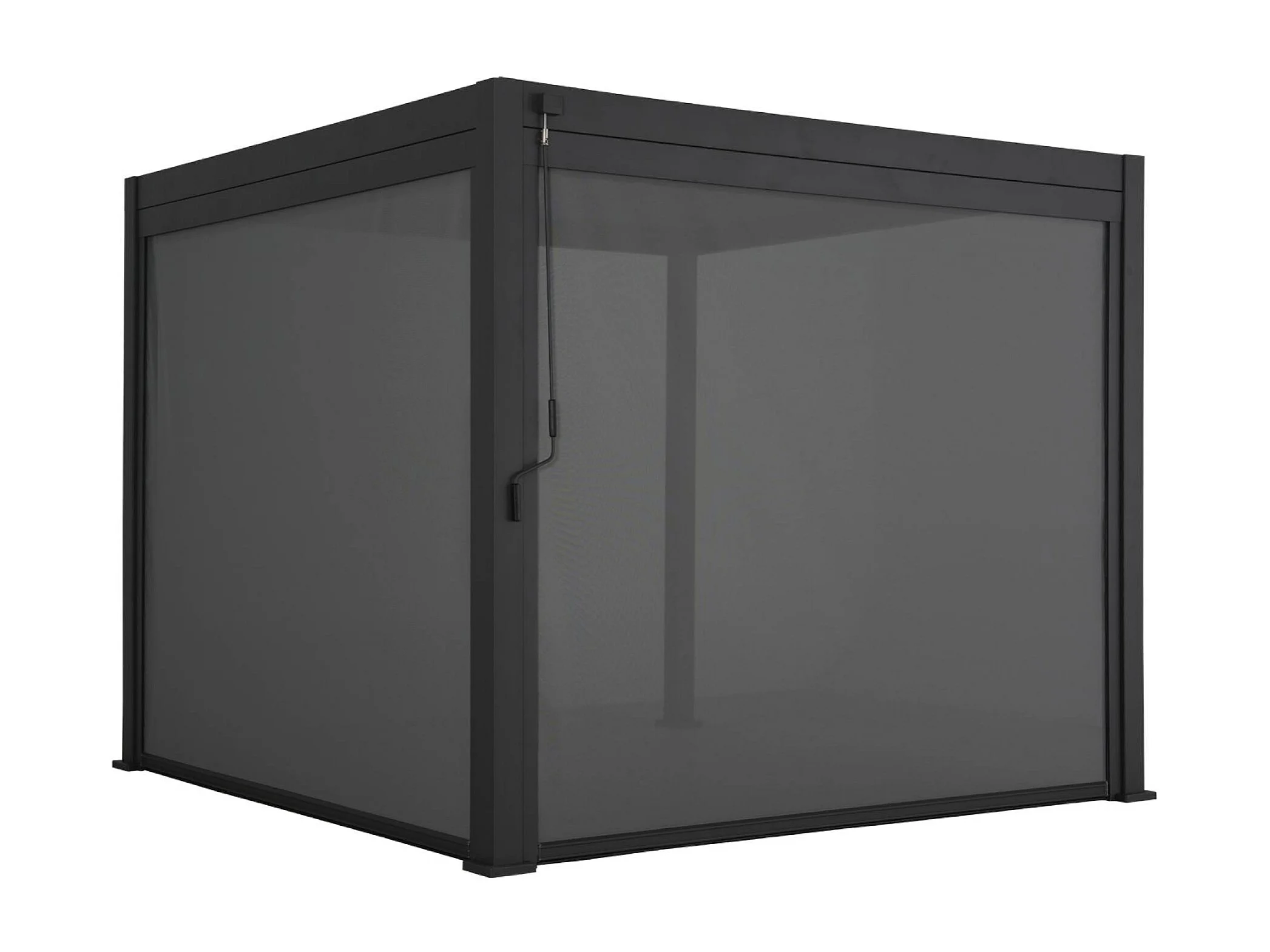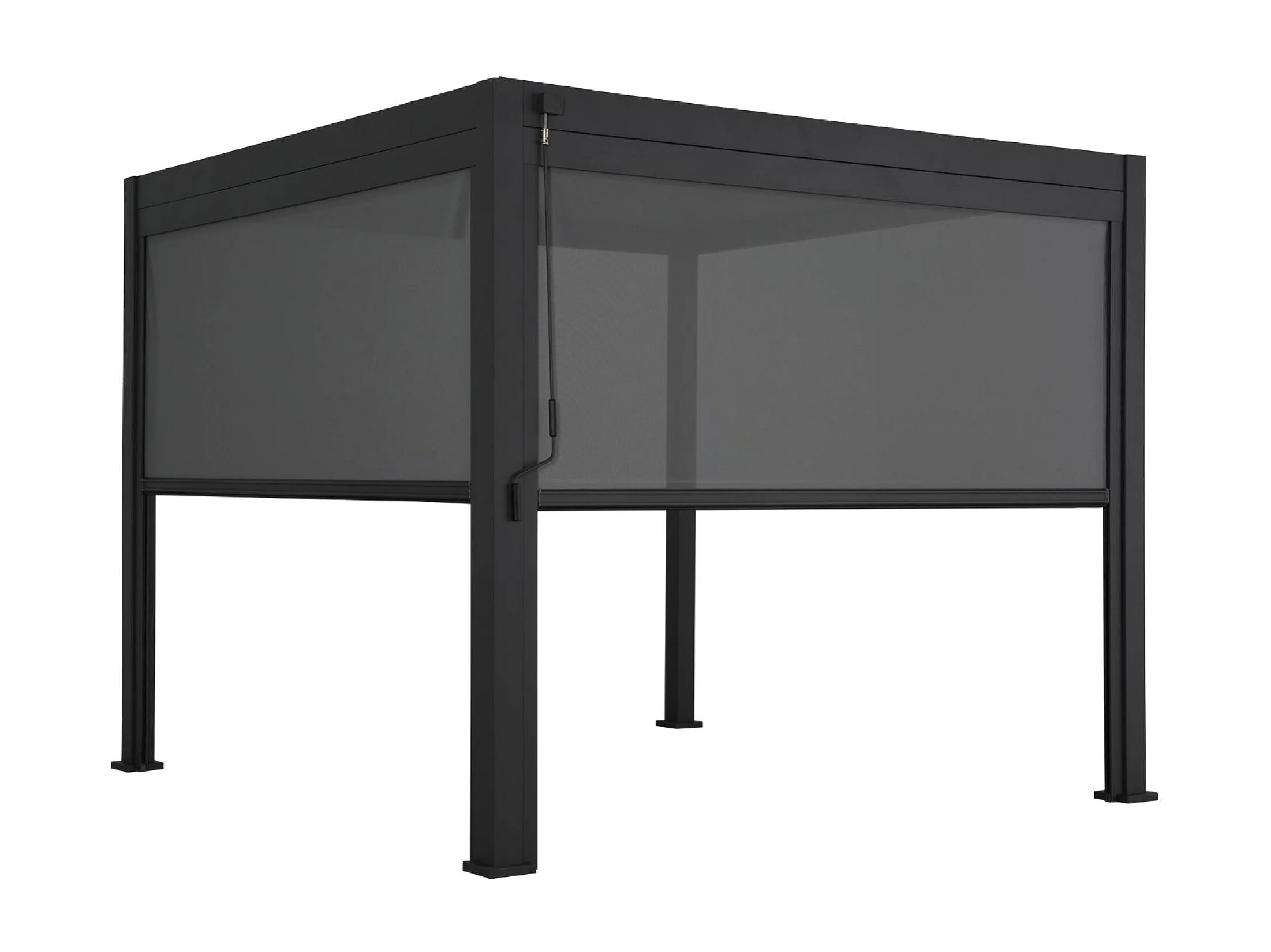 Pergola bioclimatique aluminium Triomphe 3x3 m lames orientables avec 2 stores en aluminium et textilène anthracite