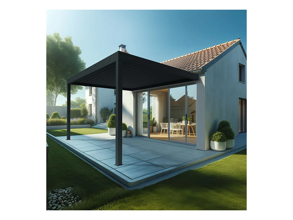 Pergola Bioclimatique AVANOA 3,00x3,038 M Vérin à Télécommande (Gris anthracite)