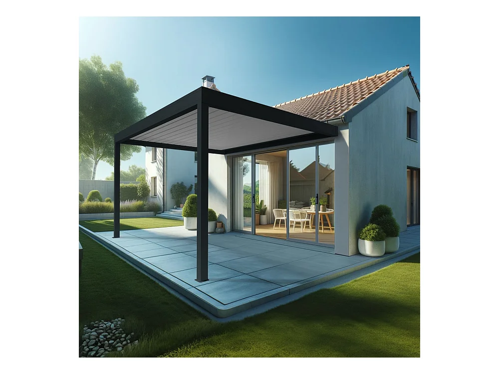 Pergola adossée en aluminium "Windsor" - Gris anthracite - 3 x 4 m