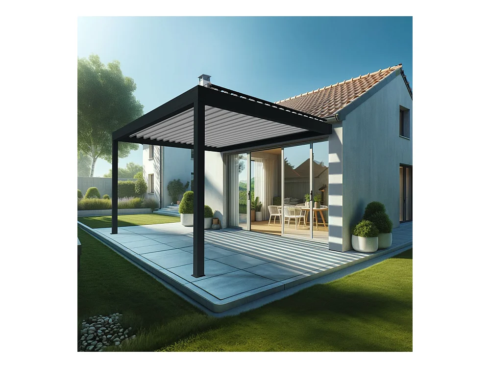 Pergola bioclimatique LOLITE 4,00x4,088 m Vérin à Télécommande - Gris