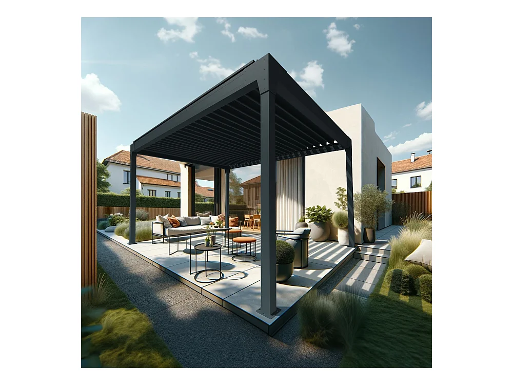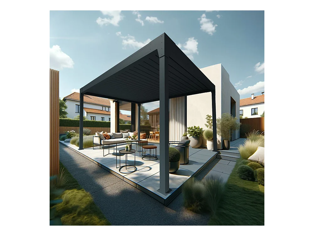 Pergola Bioclimatique AVANOA îlot 3,00x3,013 M Vérin à Télécommande (Gris anthracite)