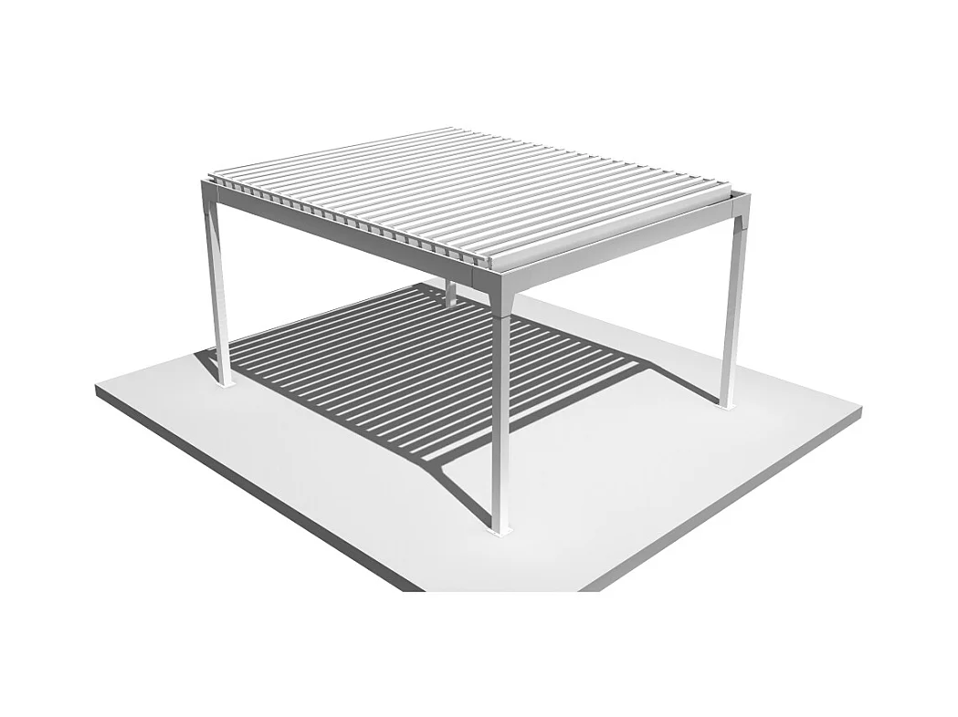 Pergola bioclimatique HELY îlot 4,00x3,929m Vérin à télécommande (Blanc)