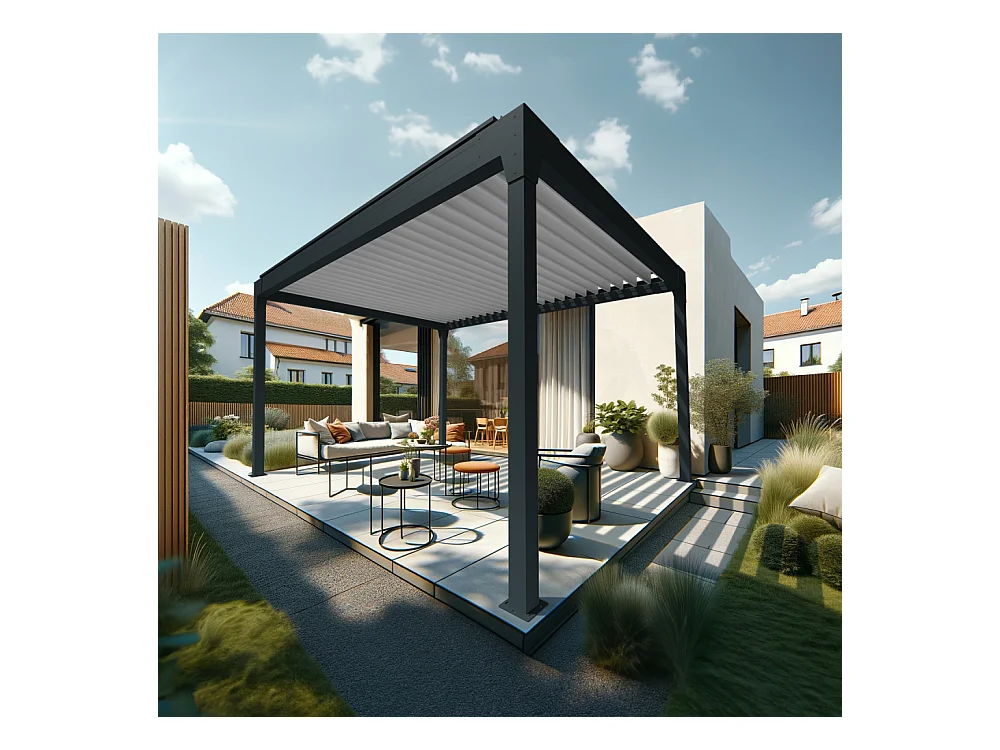 Pergola Bioclimatique gris anthracite – Triomphe – 300x400cm. aluminium. à lames orientables + store 400cm