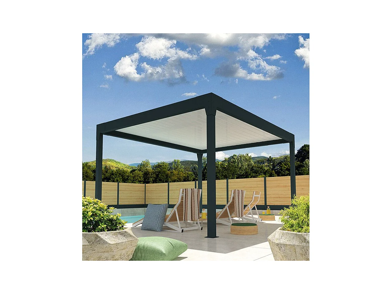 Pergola Bioclimatique AVANOA îlot 4,00x4,063 M Vérin à Télécommande (Gris anthracite / Blanc)