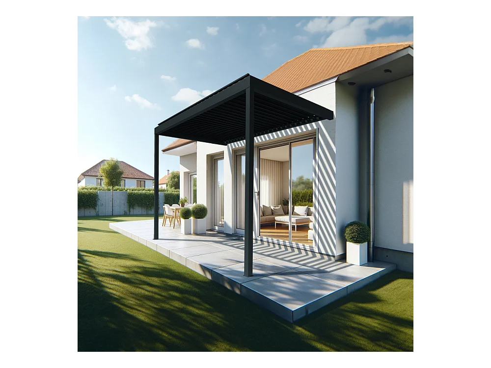 Pergola bioclimatique adossée avec led "Windsor" - 3 x 4 m - Anthracite