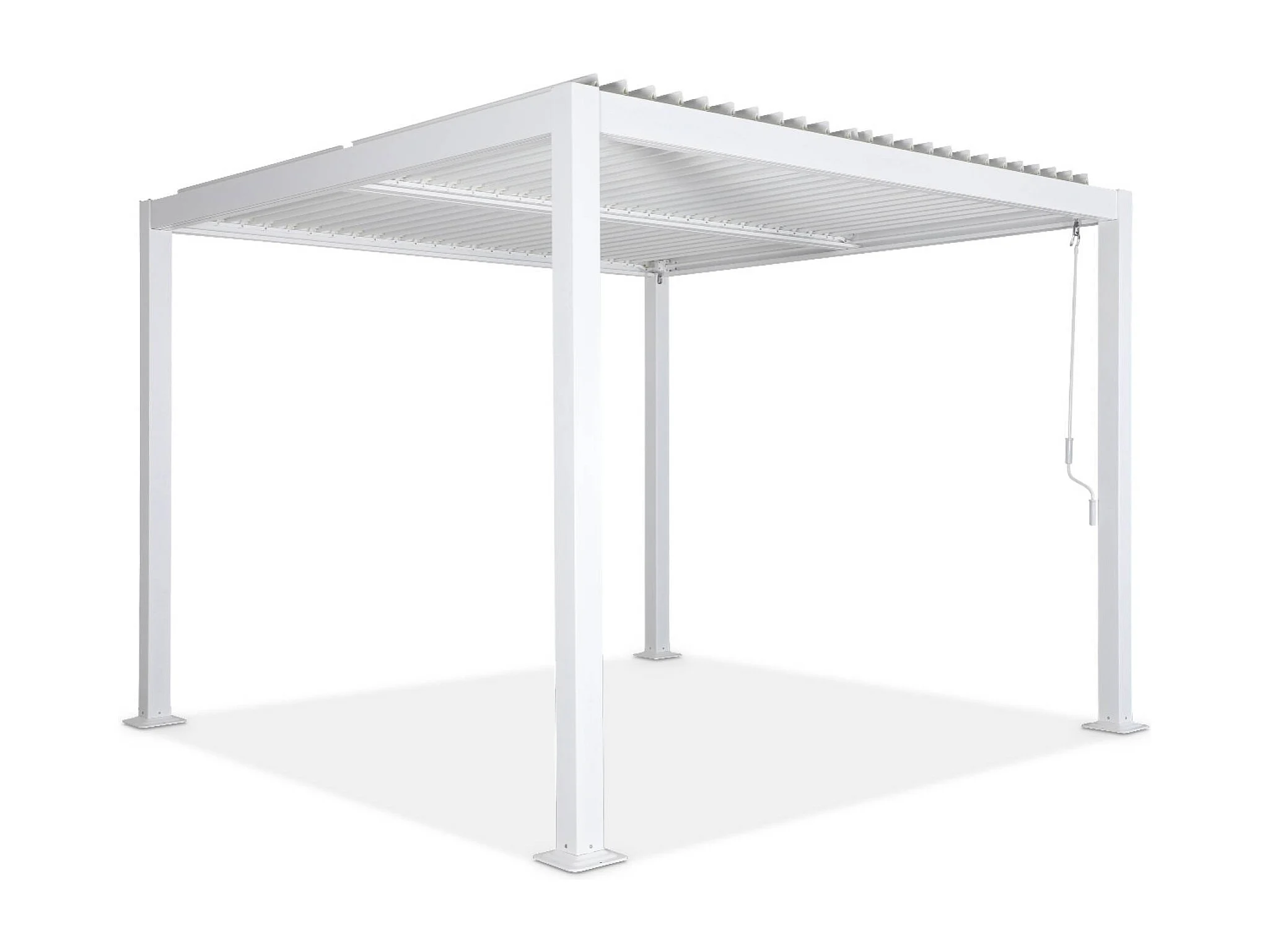 Pergola bioclimatique blanche. aluminium et acier. 3x3m. lames orientables