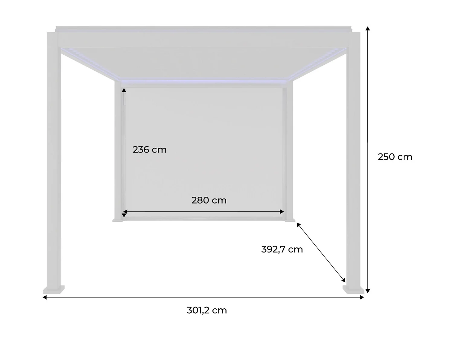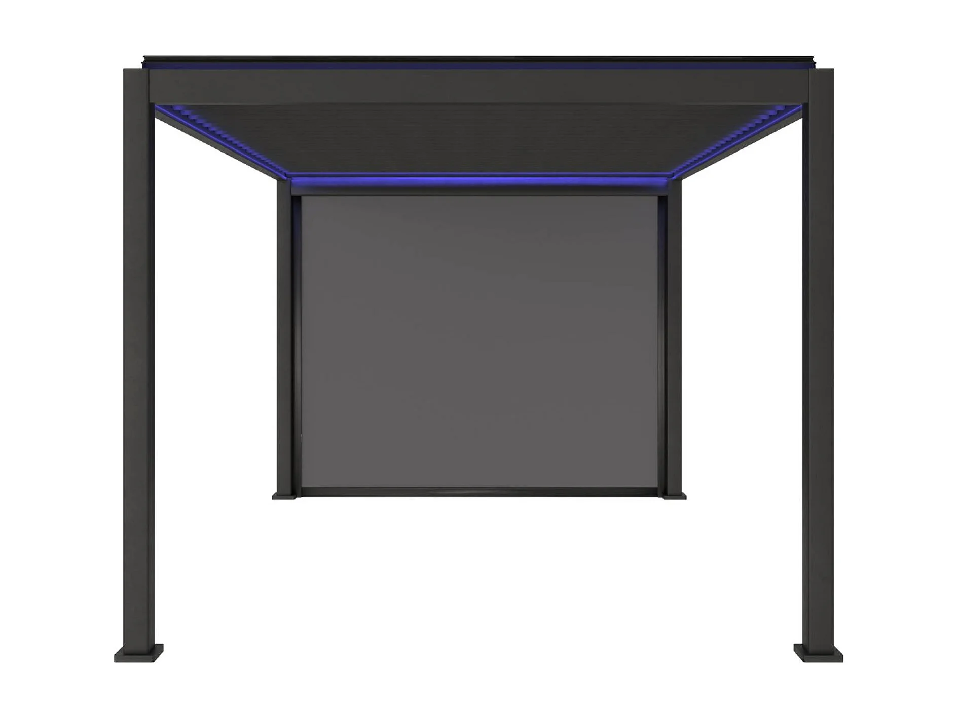 Pergola bioclimatique électrique 3x4m. aluminium. à lames orientables avec éclairage LED + store 3m