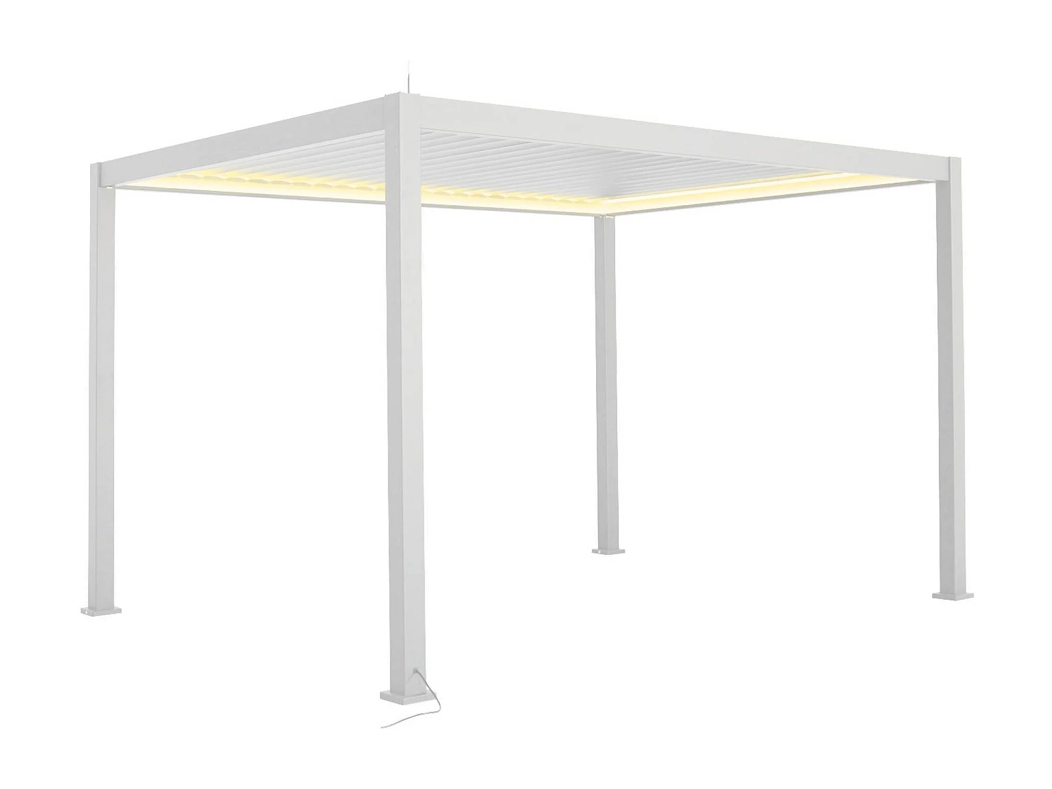 Pergola Bioclimatique électrique 3x4m blanc. aluminium. à lames orientables avec éclairage LED