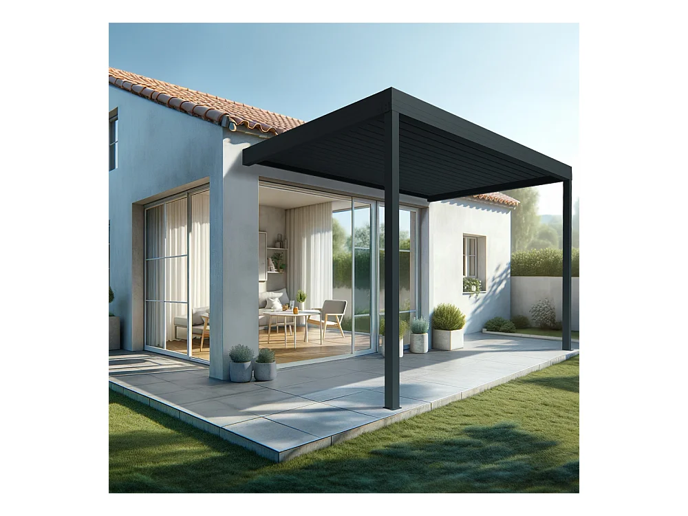 Pergola adossée en aluminium "Windsor" - Gris anthracite - 3 x 4 m