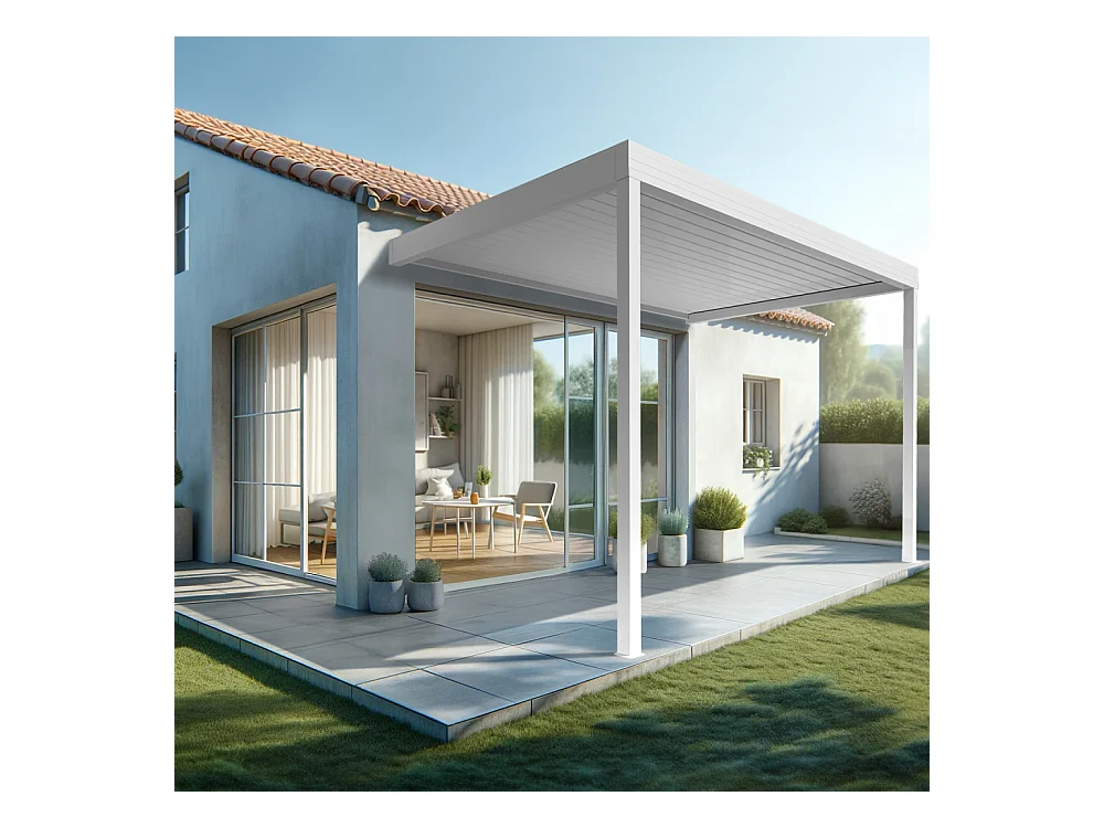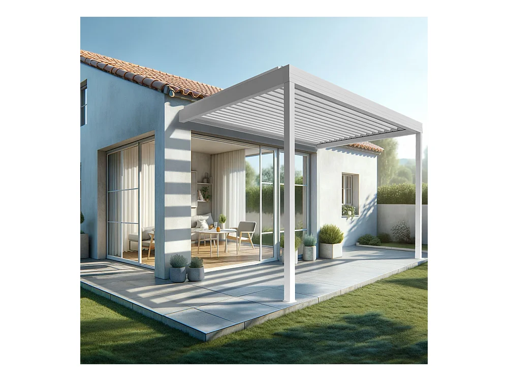 Pergola bioclimatique adossée motorisée en aluminium 3x4 m blanc