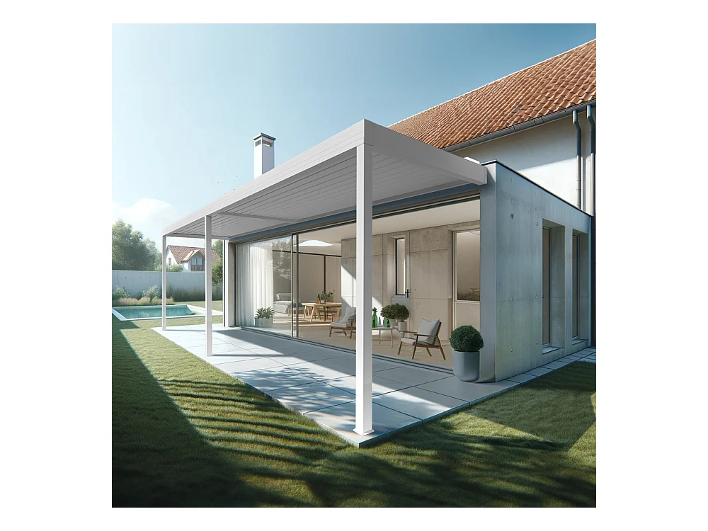 Pergola bioclimatique LOLITE 4,00x4,088 m Vérin à Télécommande - Blanc